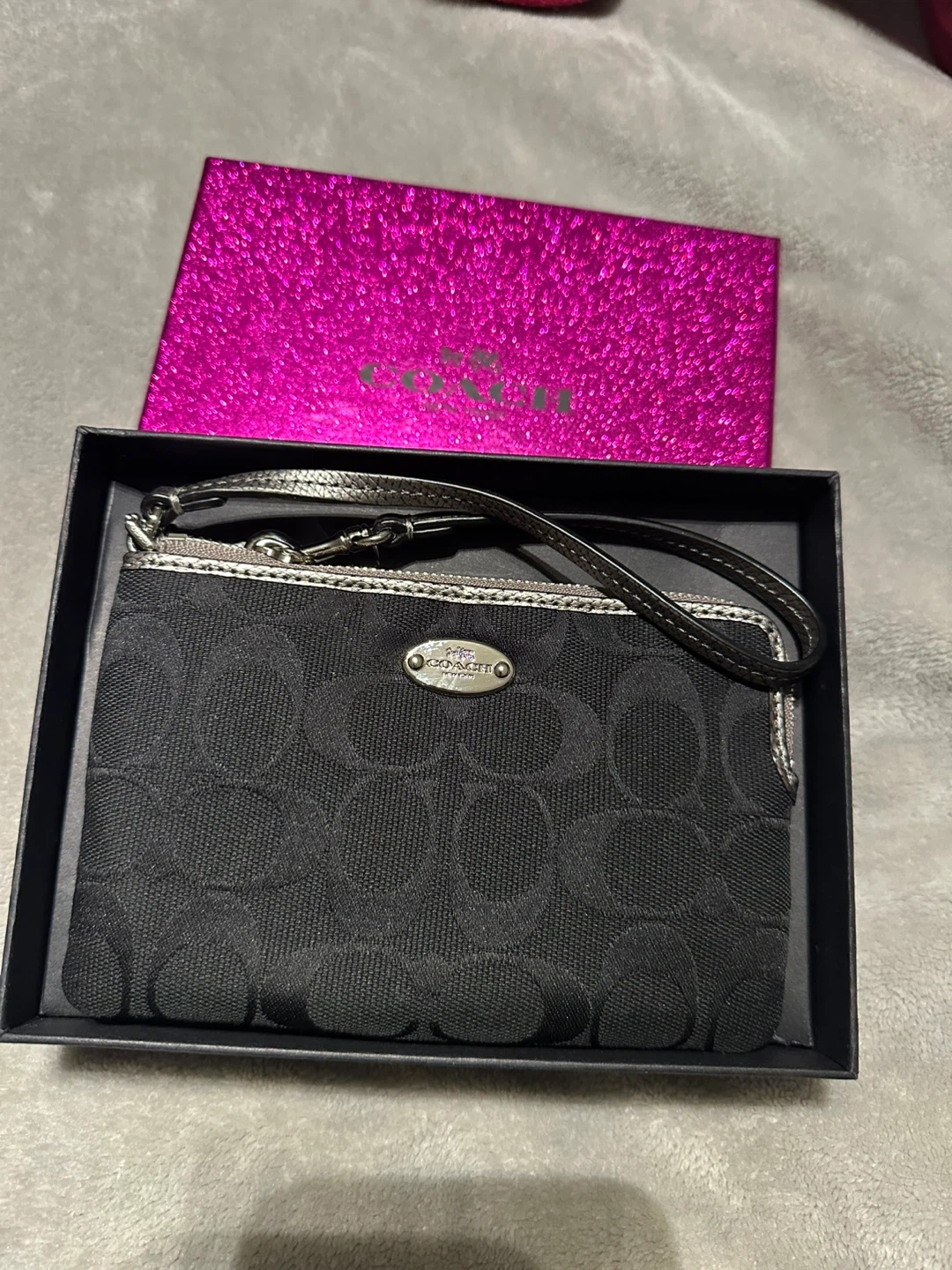 Coach Black Wristlet with Box