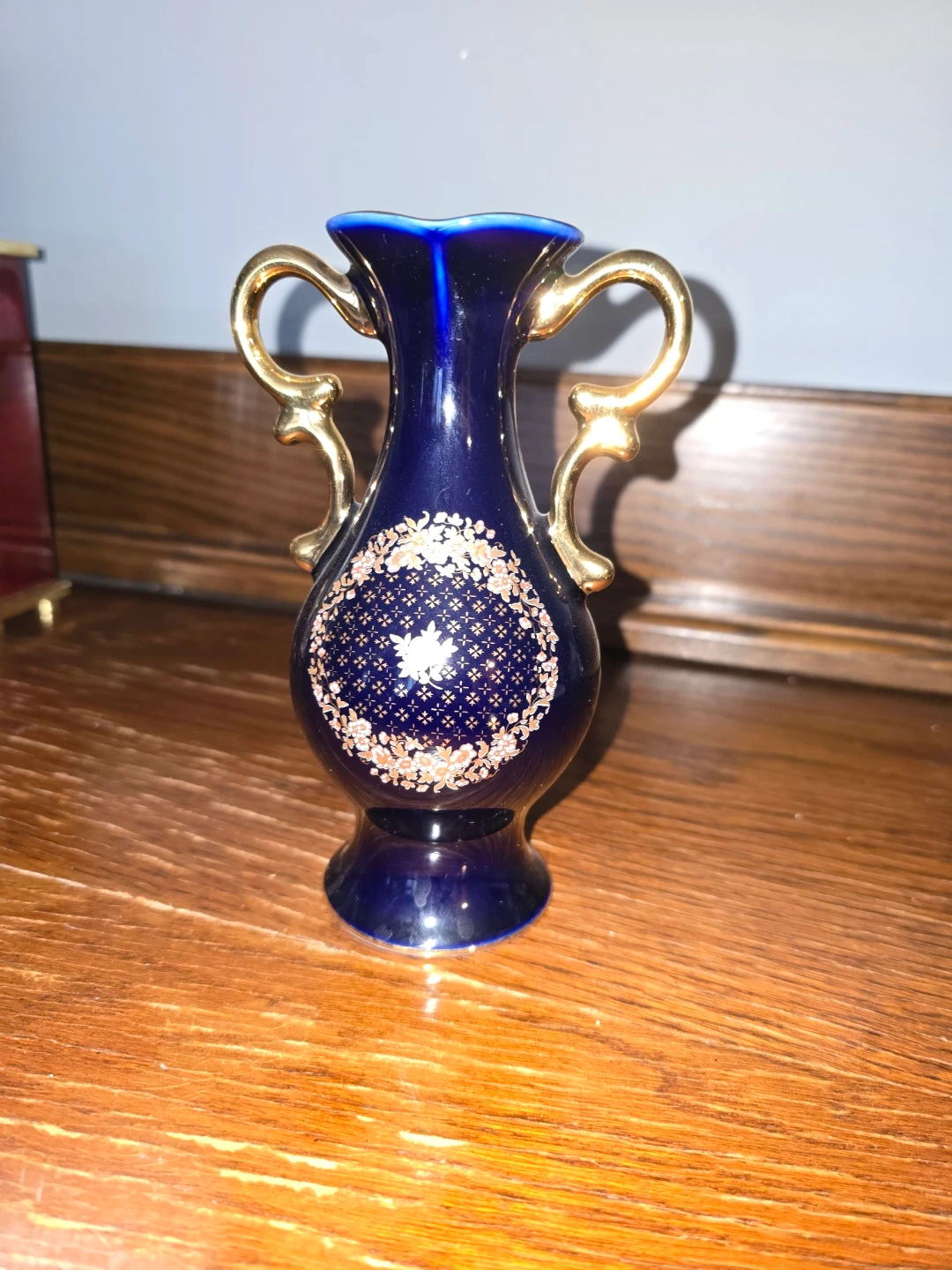 Selling a beautiful Limoges Castel Champs Elysées vase. It's a lovely shade of blue with gold accents and handles. Perfect for adding a touch of elegance to any room!