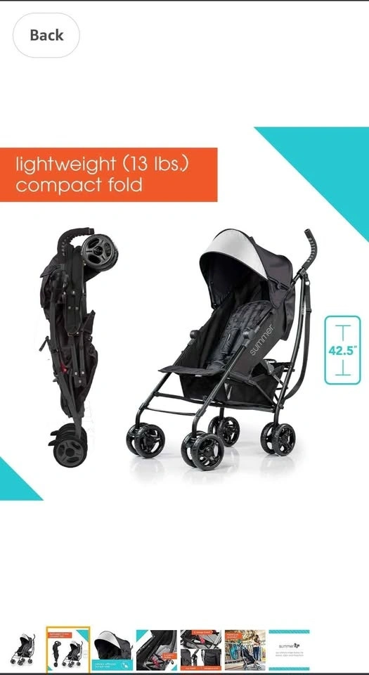 Summer Infant, 3D Mini Convenience Stroller Lightweight Stroller with Compact Fold MultiPosition Recline in good condition its very light weight and good for travel. Sells for $139.99+tax.