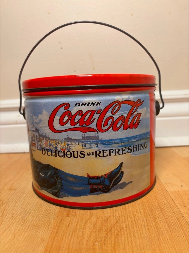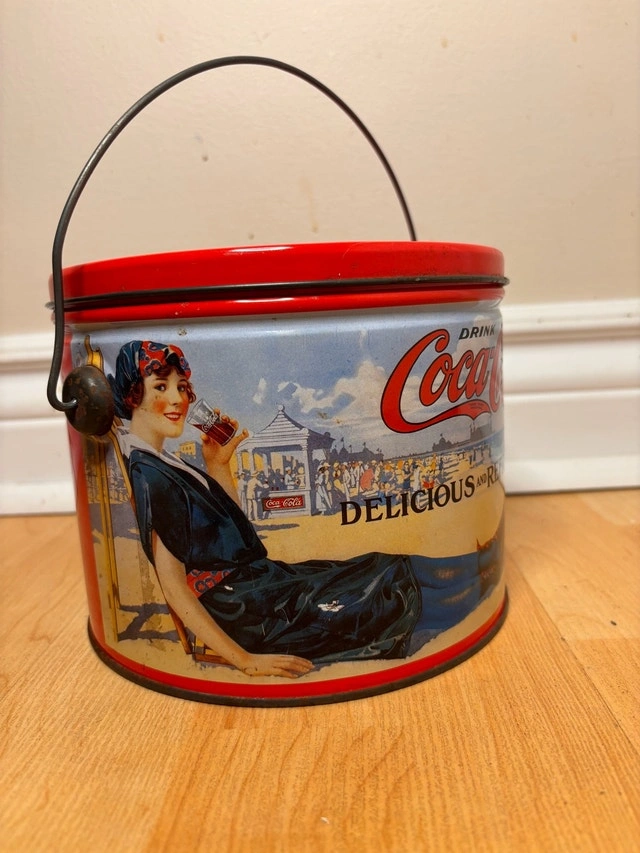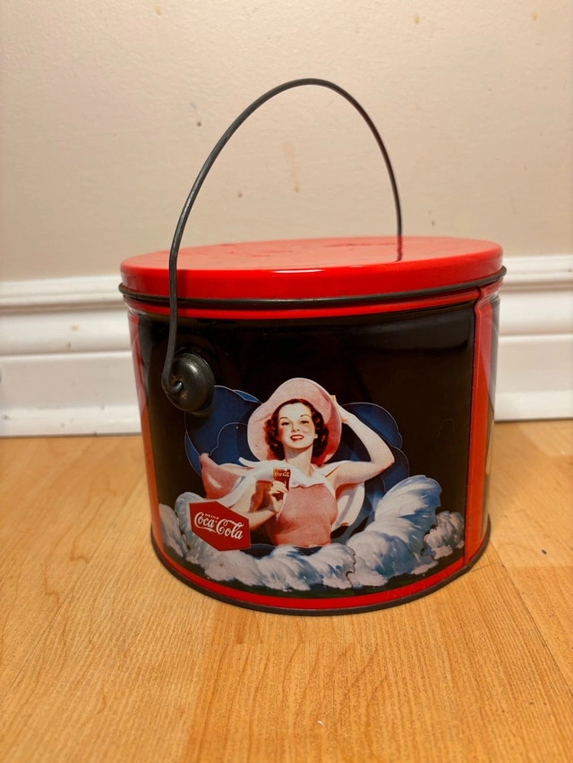 $20 or best offer - Decorative Coca-Cola metal bucket featuring classic vintage-style artwork and original Coke branding. Made of painted metal with a sturdy wire handle. Great as an ice bucket, storage pail, or retro décor piece. Perfect for a bar area, kitchen, cottage, or anyone who likes Coca-Cola memorabilia. Details: • Painted metal bucket • Coca-Cola branding • Wire handle