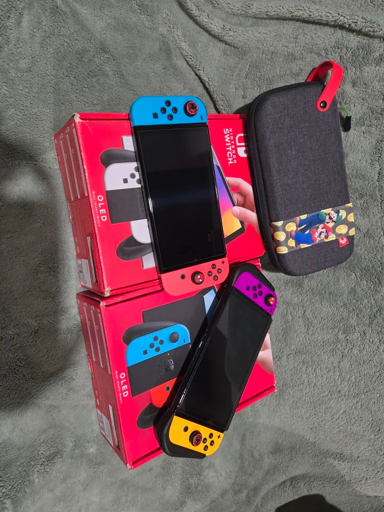 Selling 2 Nintendo Switch OLED model with a bunch of accessories! It comes with the original box, a carrying case, and some extra grips for the joycons. Great for gaming on the go or at home!