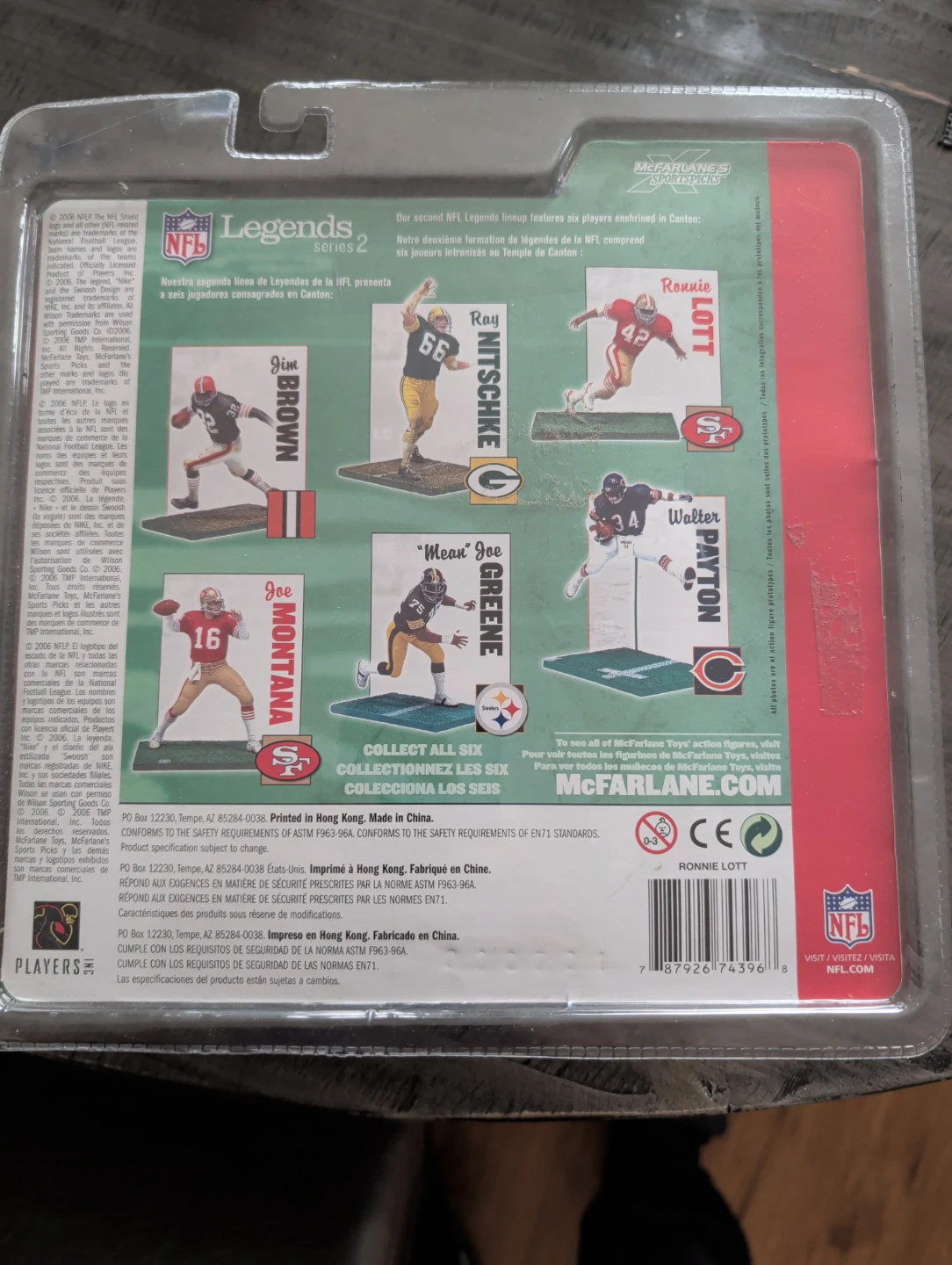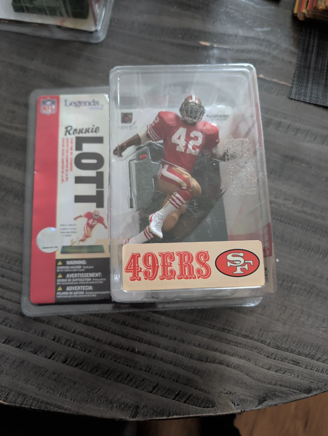 Selling a Ronnie Lott NFL Legends Series 2 figurine. It's in great condition and comes in its original packaging. A must-have for any 49ers fan or collector of NFL memorabilia!