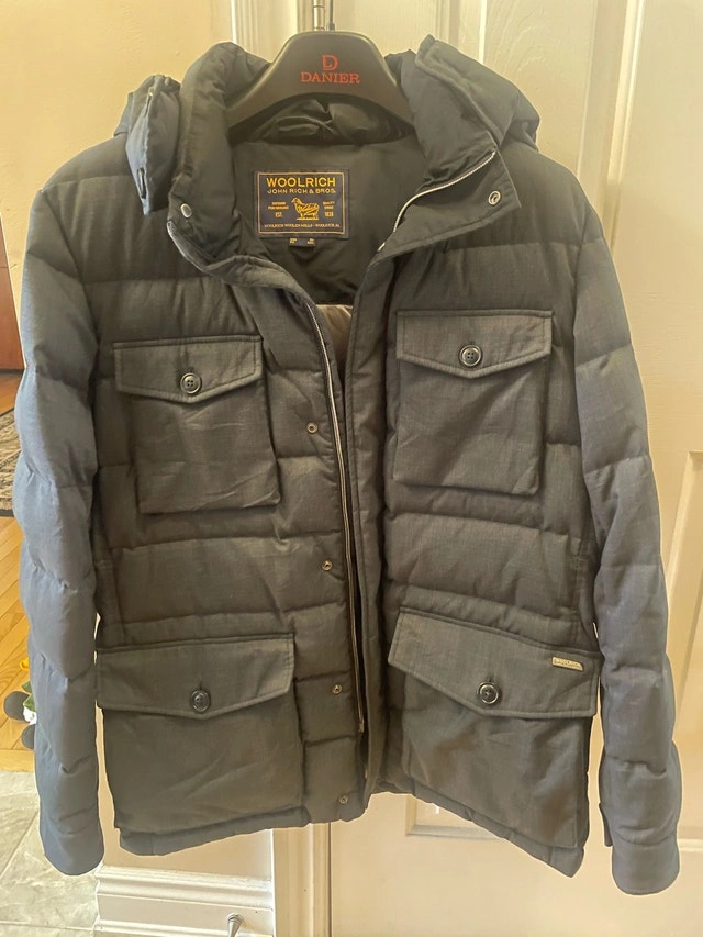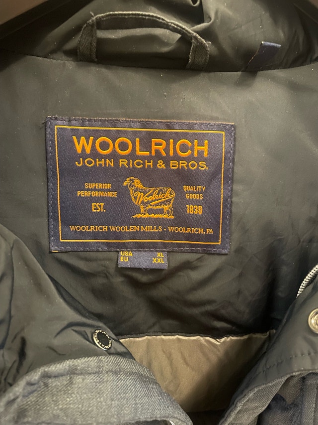 Very warm and stylish. Woolrich down parka, size XL. It features a durable outer shell, warm down insulation, and multiple pockets for all your essentials. Here are some additional details: