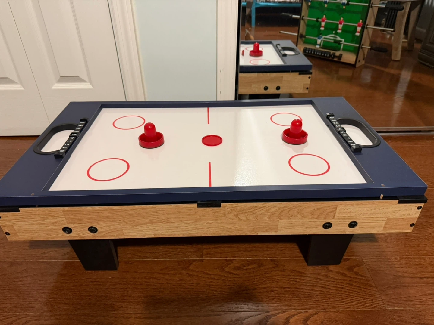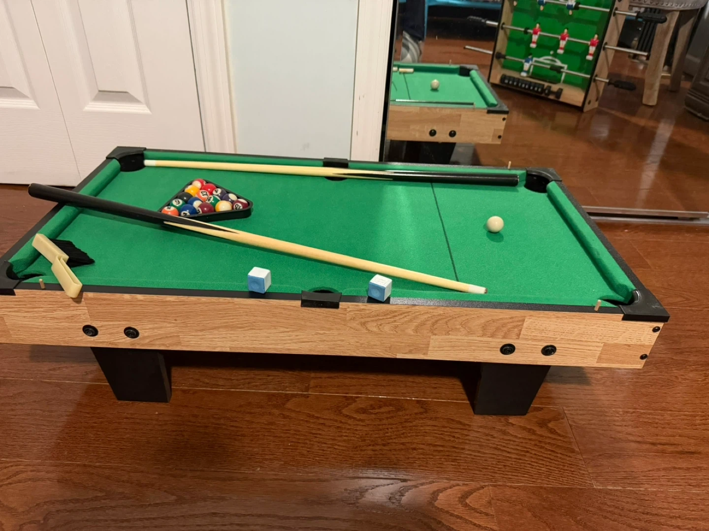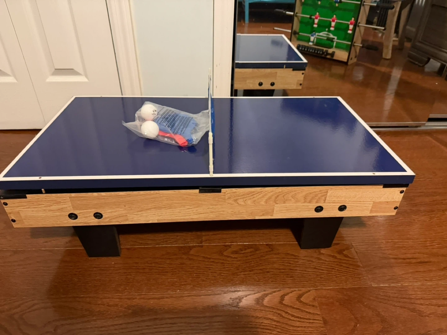 Get ready for some family fun with this 4-in-1 combo game table! It features foosball, air hockey, ping pong, and pool, offering a variety of entertainment options. It's in great condition and ready for a new home game room!