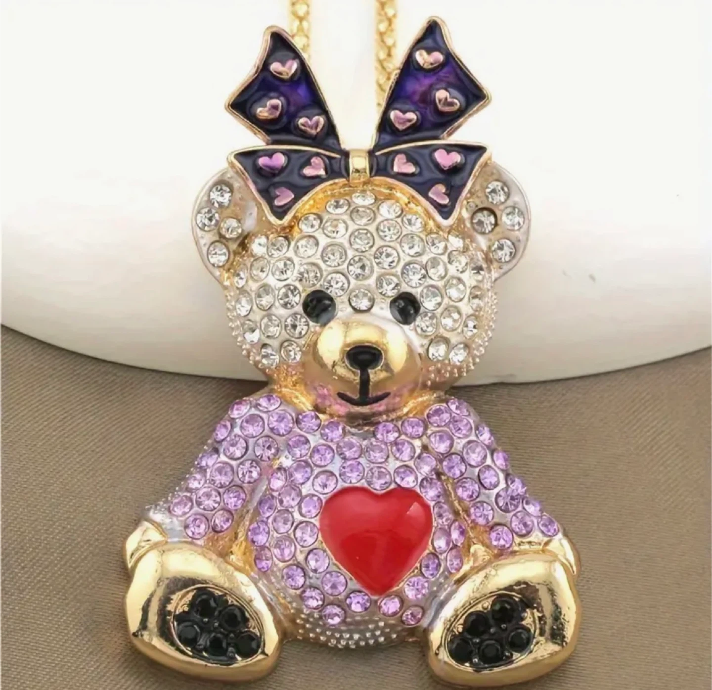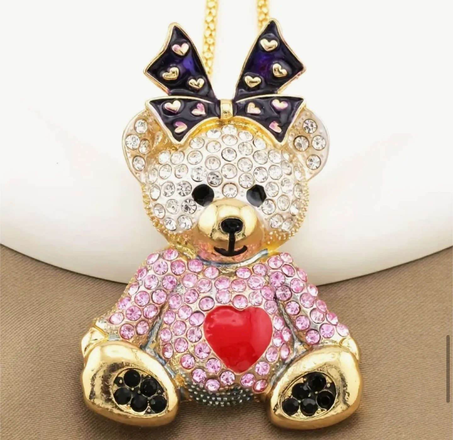 Pretty in Pink Teddy Bear Necklace πŸ§ΈπŸ’ŽπŸ’Ž