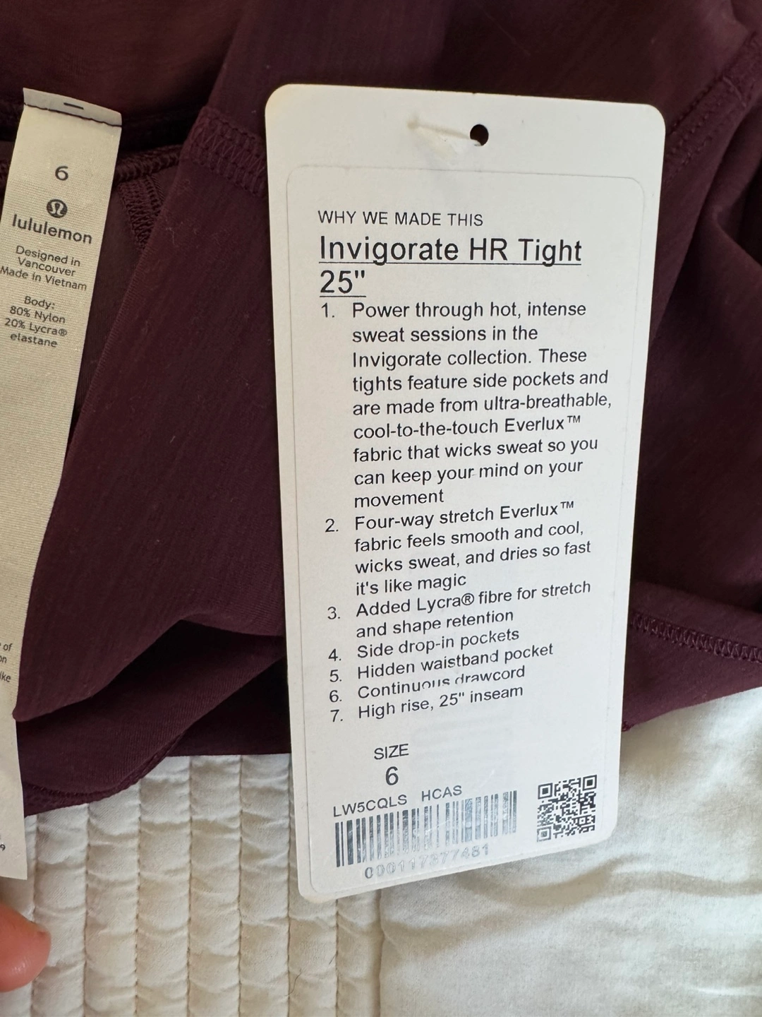 Selling a pair of Lululemon Invigorate HR Tights in size 6!