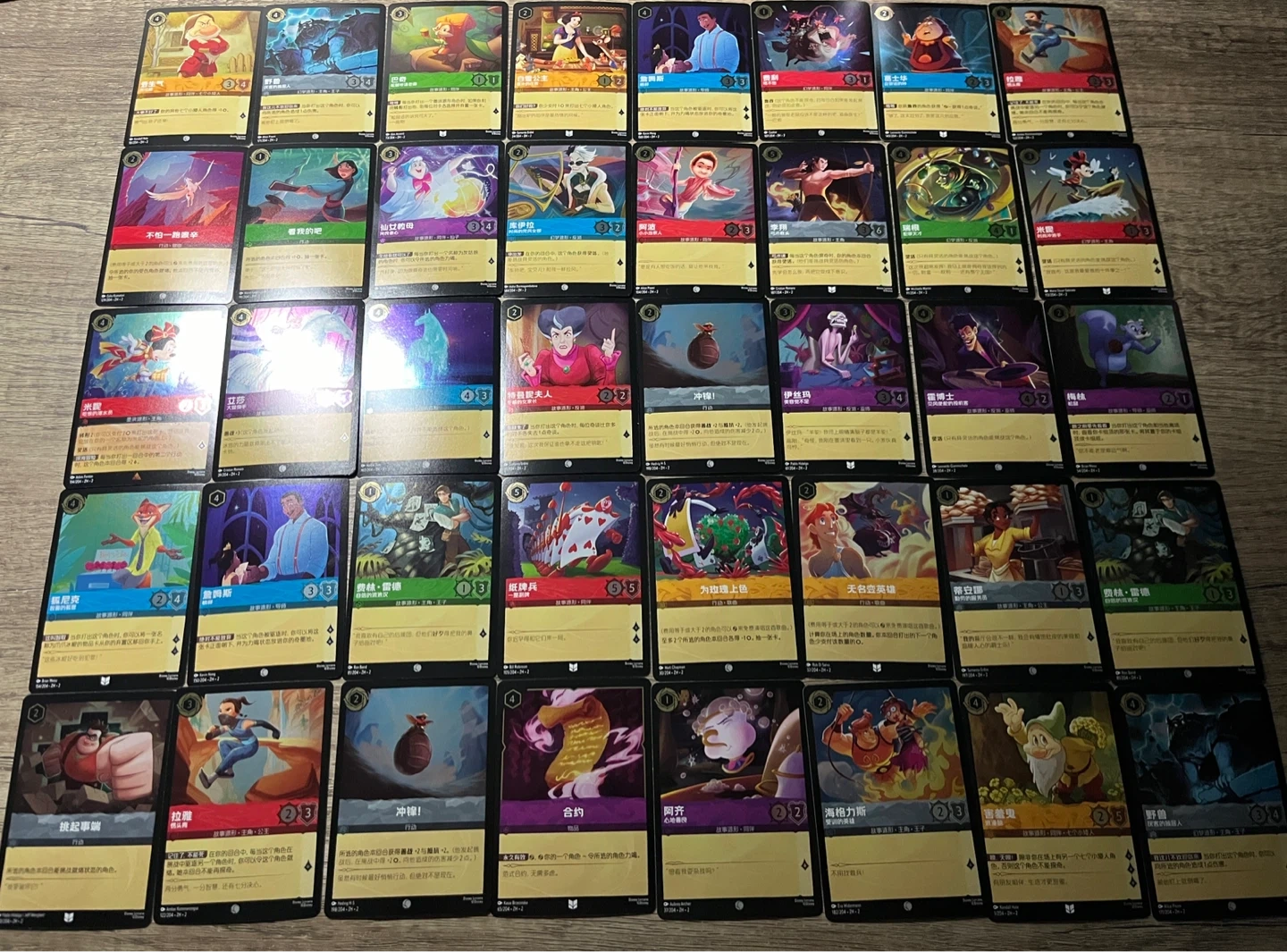 Selling a collection of Chinese Disney Lorcana trading cards, as singles or as a whole set of 40 cards. Great for collectors, as each card features beautiful artwork and unique characters from Disney movies.