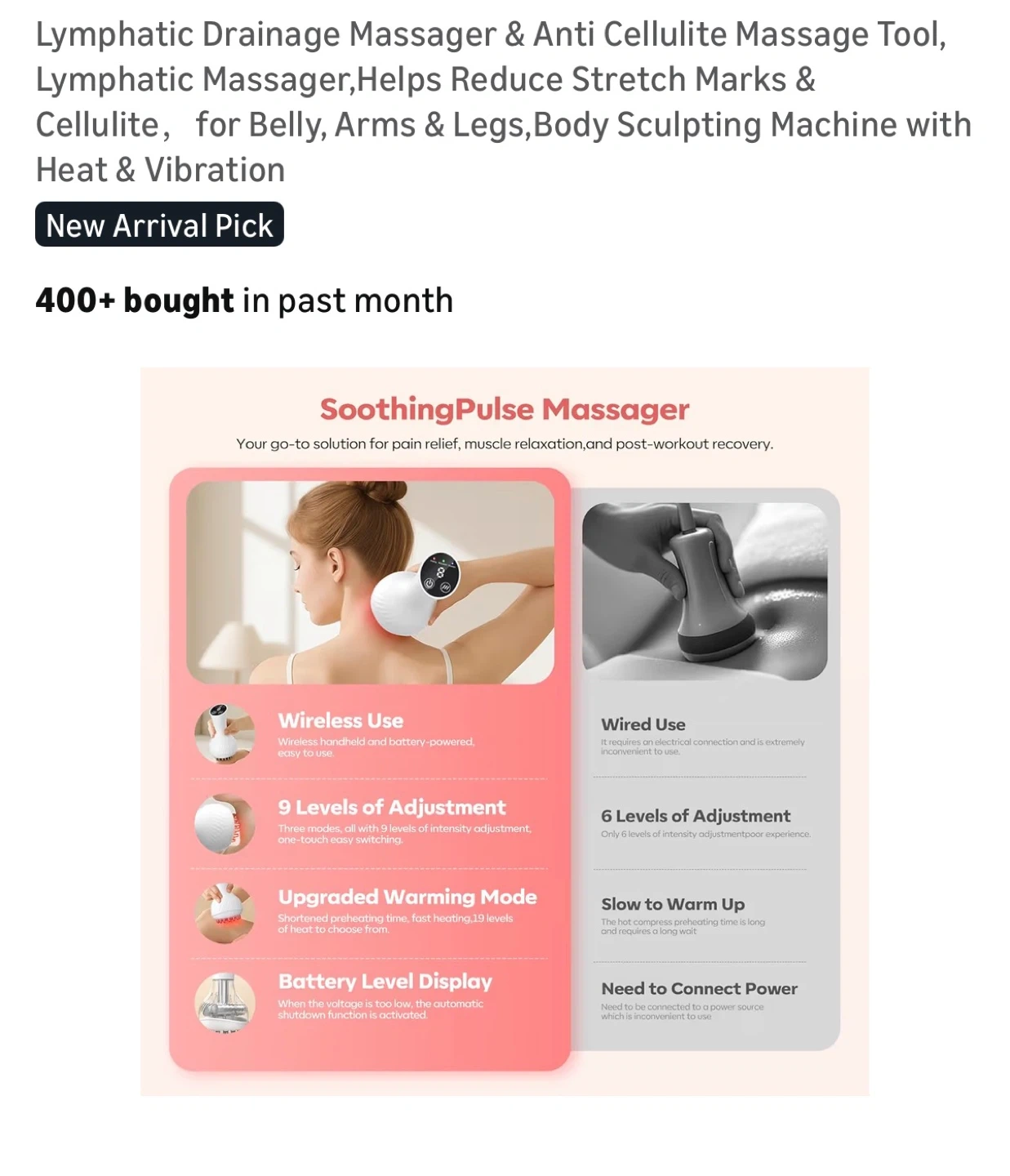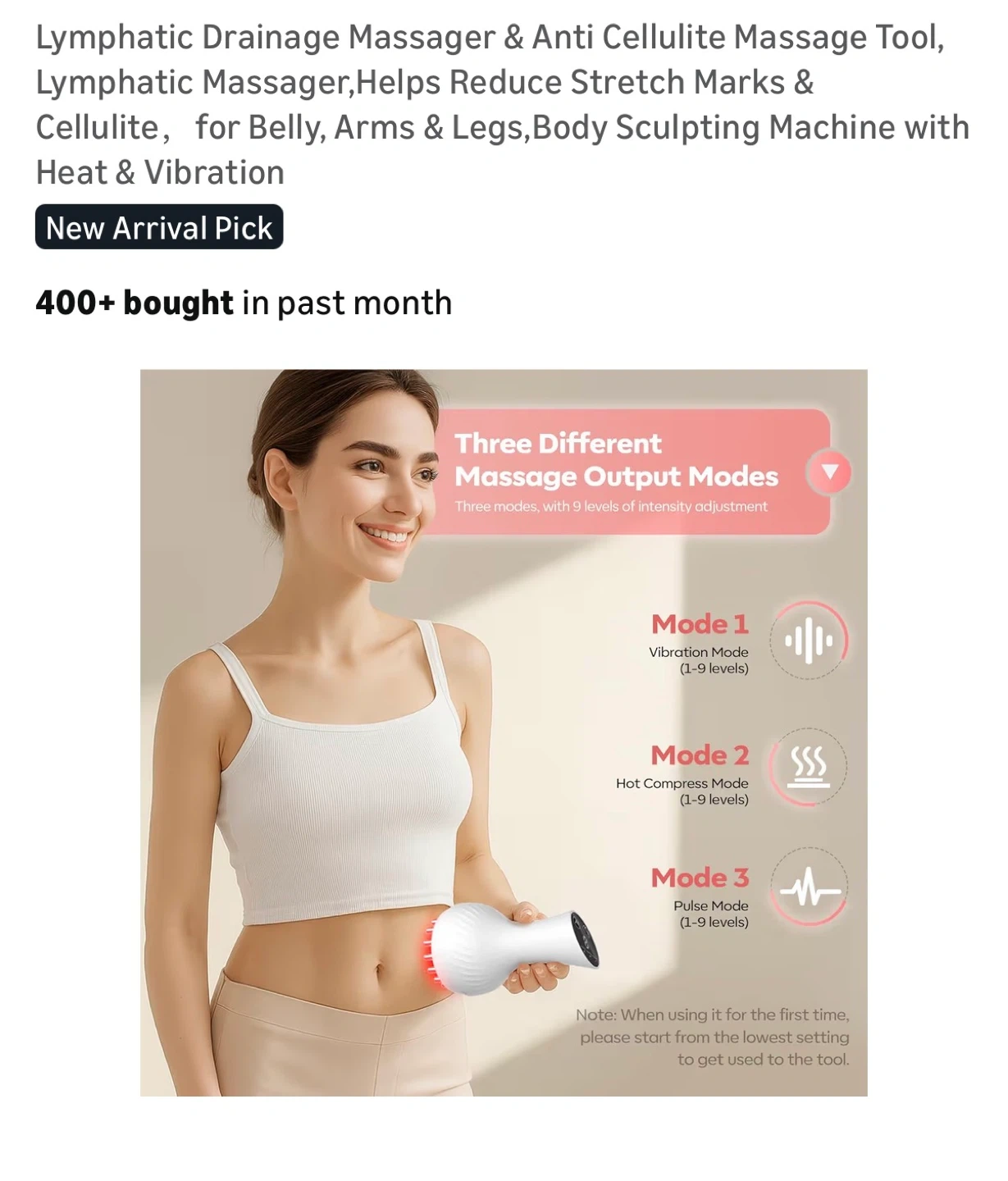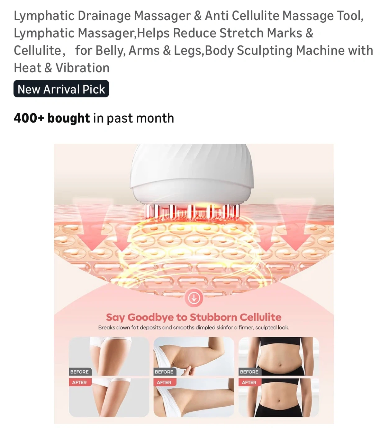 Lymphatic Drainage Massager & Anti Cellulite Massage Tool, Lymphatic Massager,Helps Reduce Stretch Marks & Cellulite,for Belly, Arms & Legs,Body Sculpting Machine with Heat & Vibration