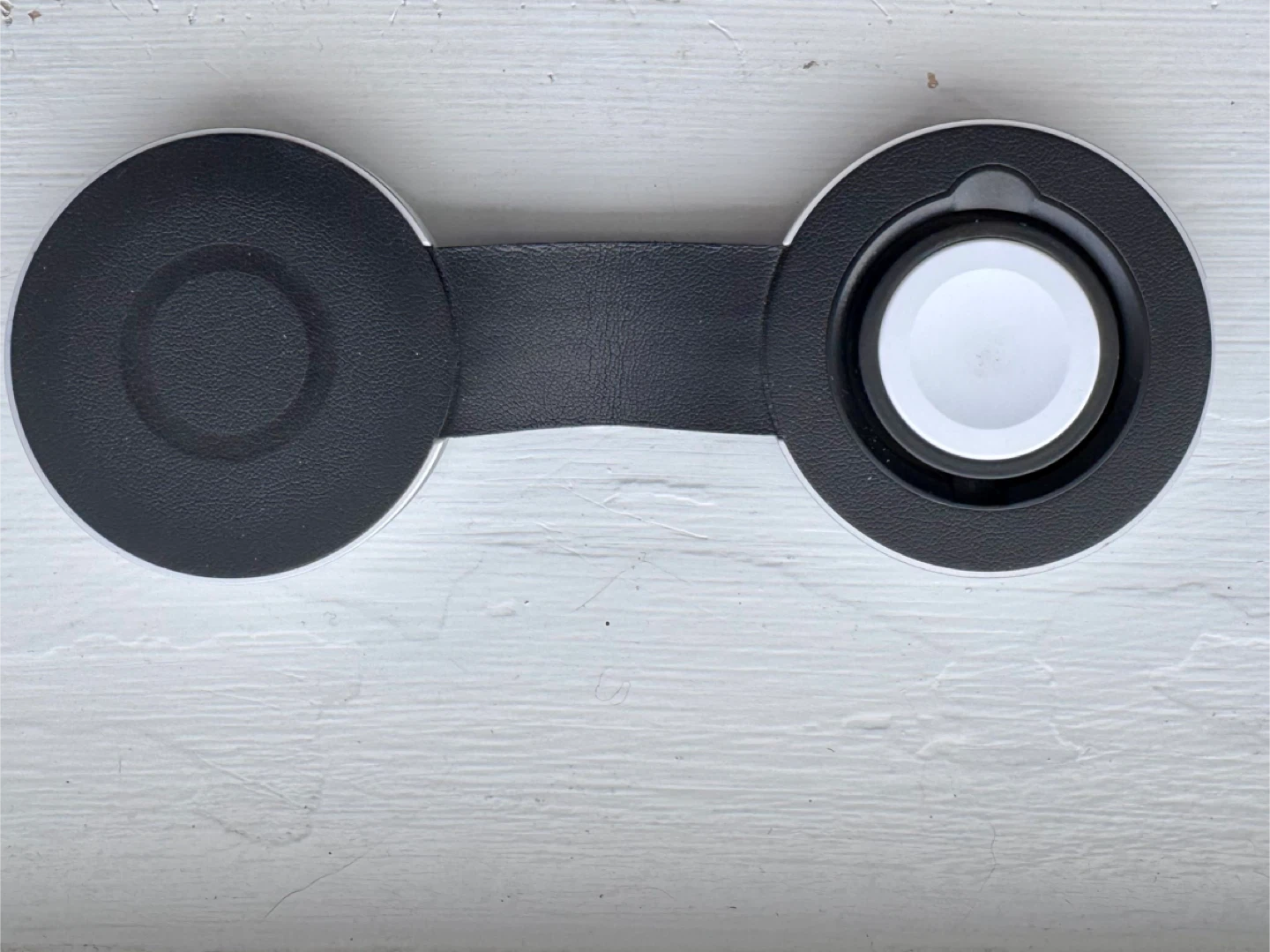 Twelve South ButterFly 2-in-1 MagSafe Charger. This is a portable charging solution for your Apple Watch and iPhone. Great for travel and for the home. Comes with a white braided charging cable, WITHOUT a wall plug.