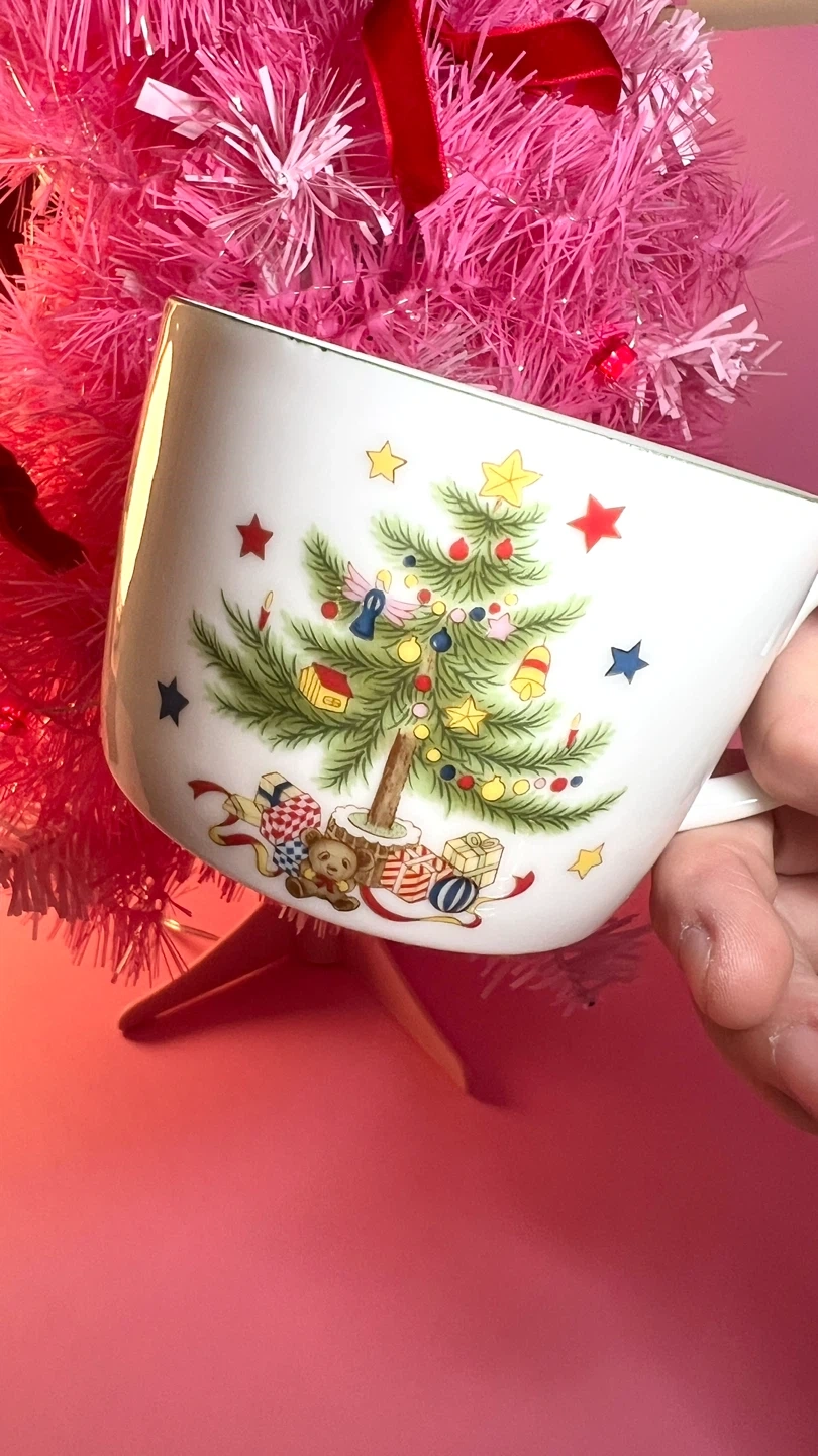 Selling a cute vintage mug with a Christmas tree design! It features a charming illustration with stars and presents. Perfect for adding a festive touch to your morning coffee or hot chocolate.