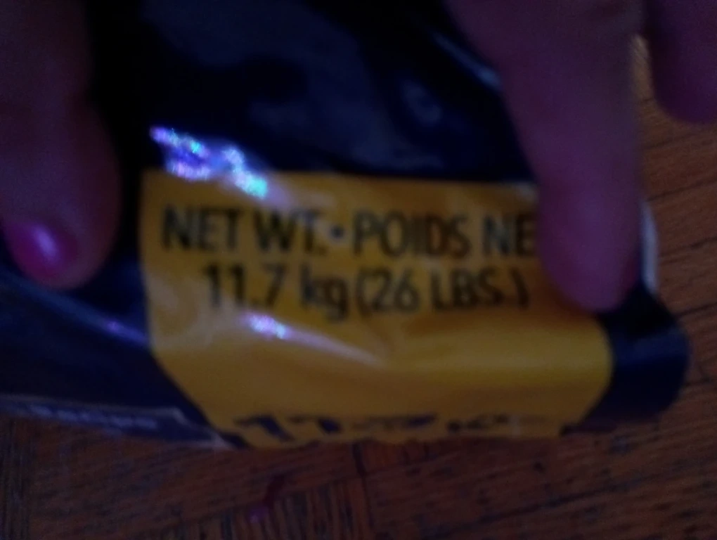 It's for senior dogs and the bag weighs 11.7 kg (26 lbs).