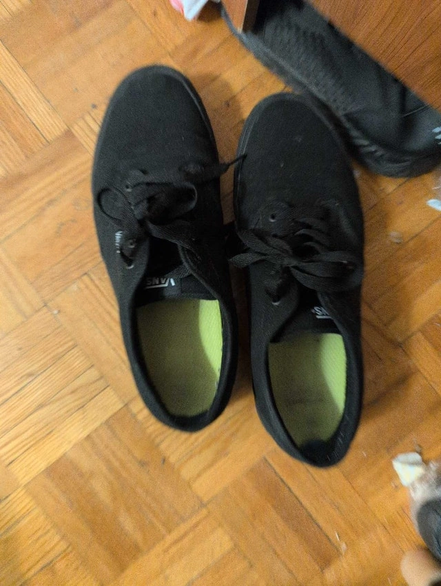 These are used Vans shoes in fair condition, perfect for casual wear. The classic black design offers versatility for any outfit.