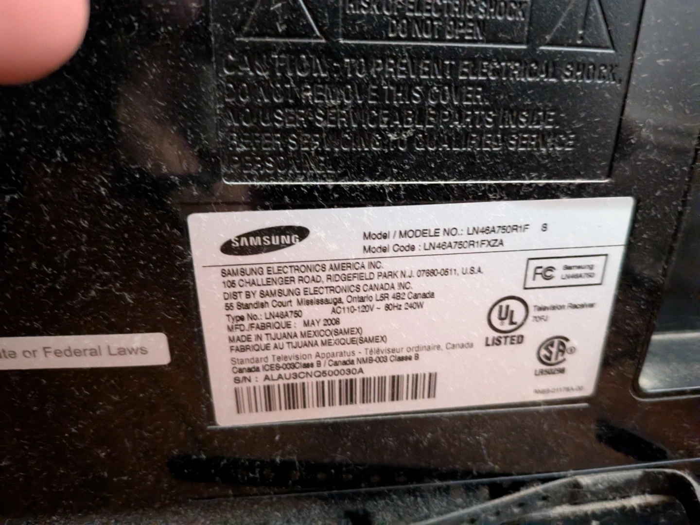 Selling a Samsung 46 inch LCD TV, model number LN46A750R1F. . It has multiple ports in the back., great condition, It's a bit heavy because it has a protective mica cover.