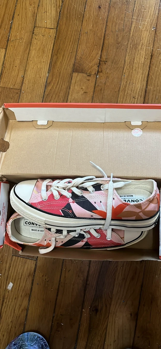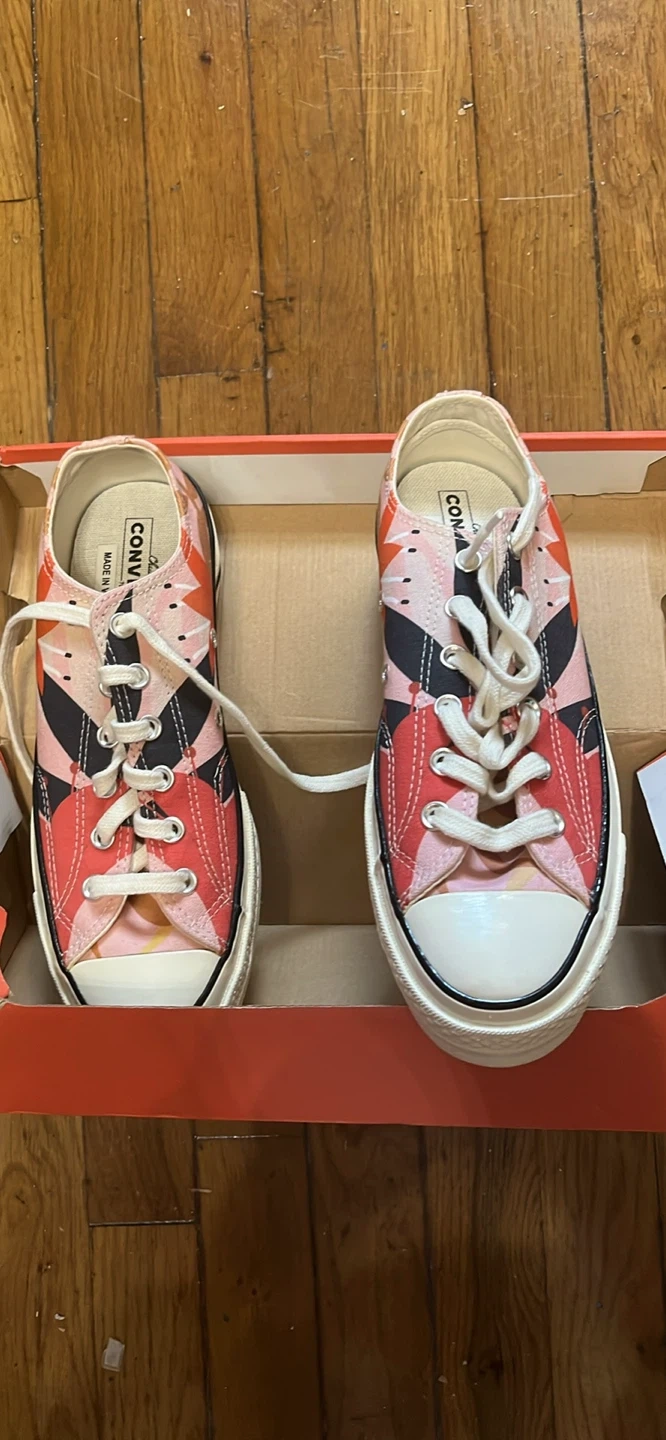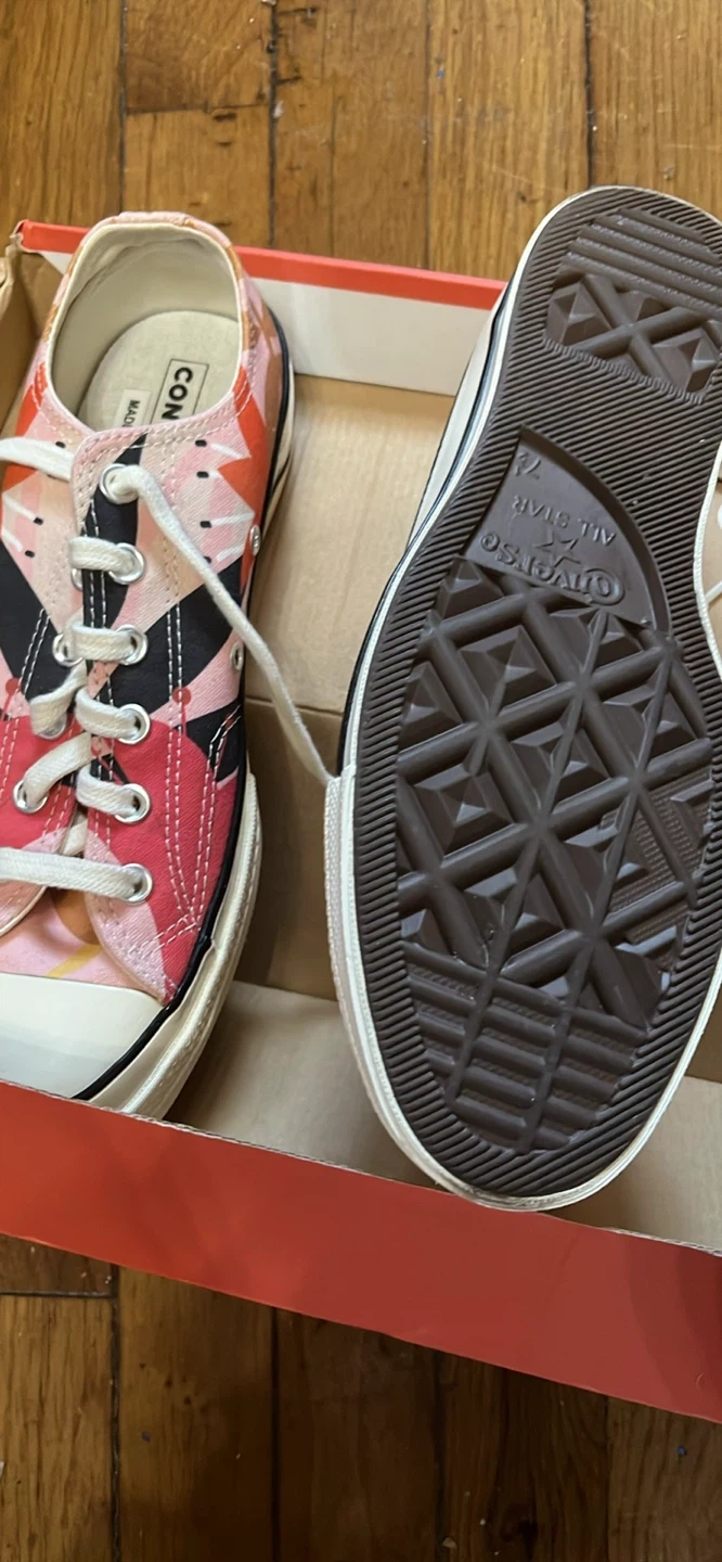 Selling a pair of Converse Chuck Taylor All Star Low Top sneakers! They come with the original box. Check out the photos for the unique design and condition