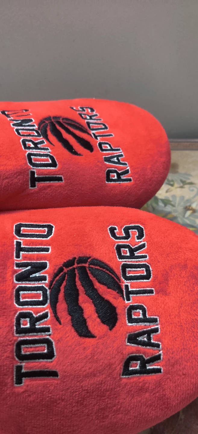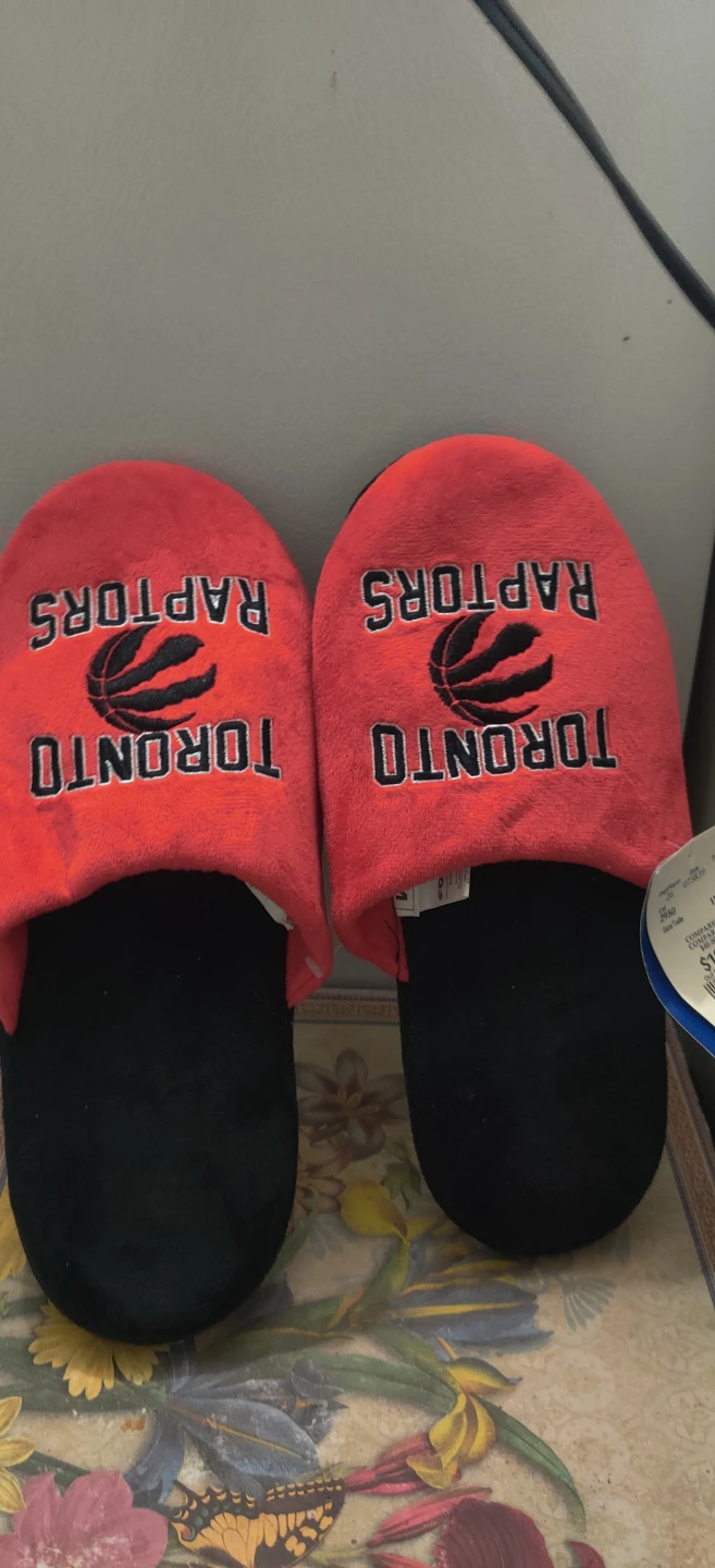 Keep your feet cozy with these Toronto Raptors slippers! They're a men's size medium (9-10).Price is firm and you would have to pick up within 7 days