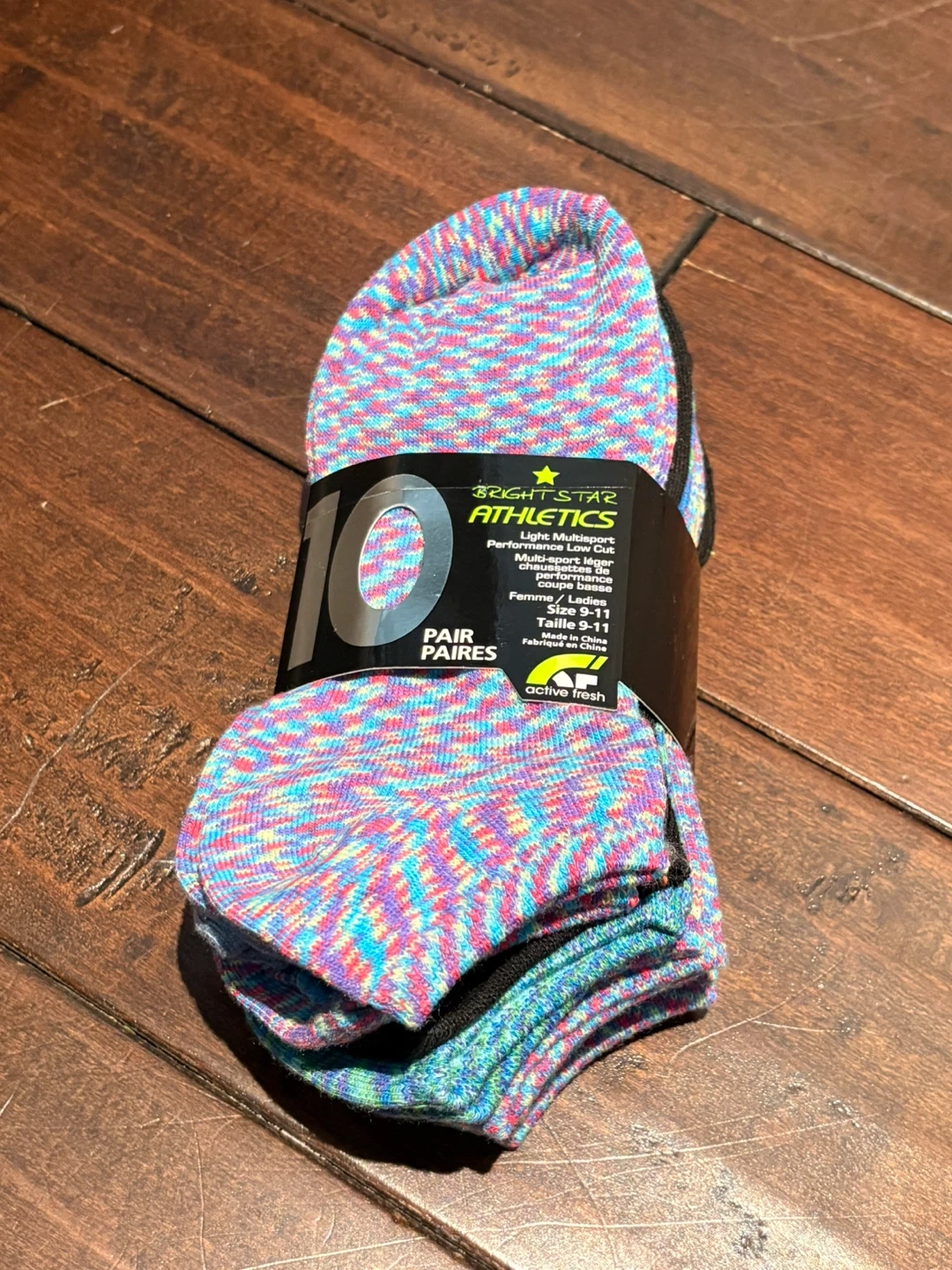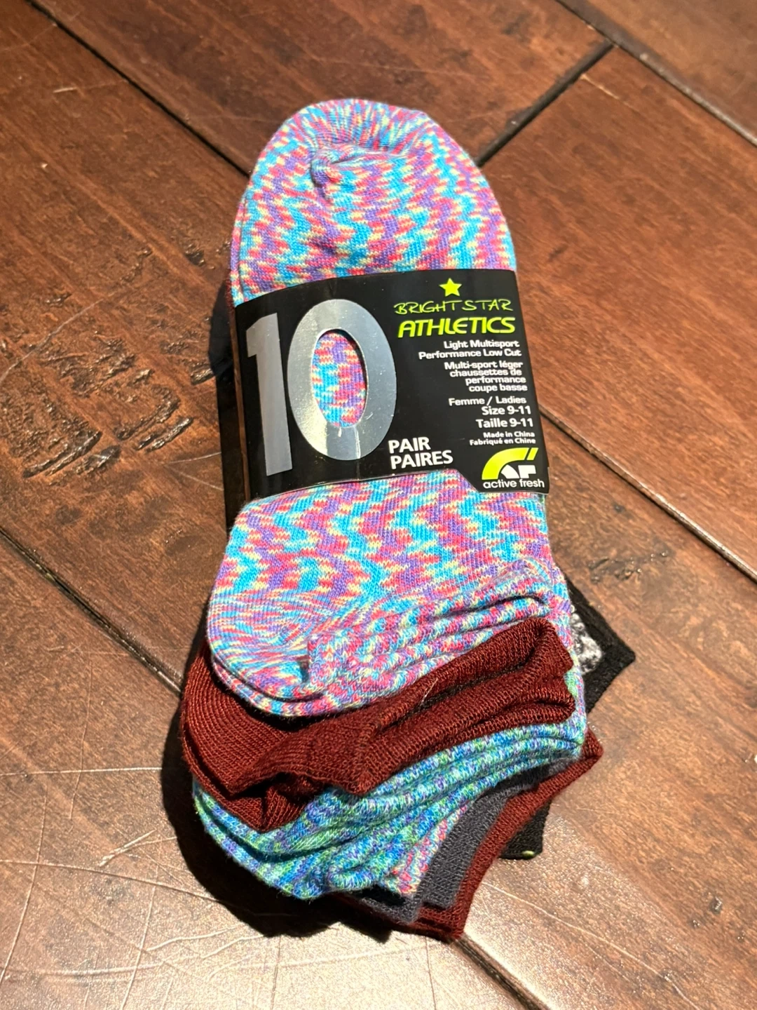 Here's a pack of 10 pairs Athletics socks, size 9-11. They are light and multi-sport and have moisture management system to keep you comfortable
