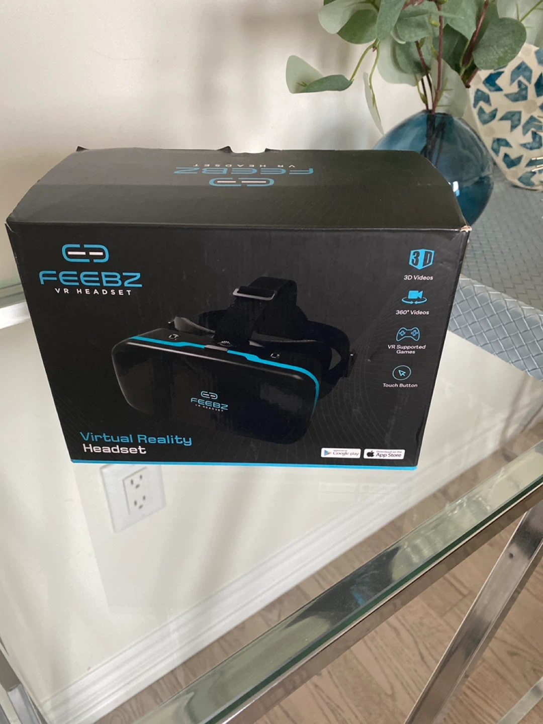 Selling a FEEBZ VR Headset! It's a virtual reality headset that supports 3D and 360° videos, as well as VR supported games. It also features a touch button! The box is included.