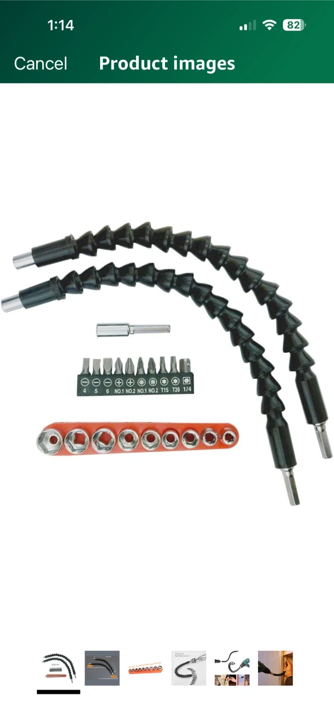 Selling a flexible drill extension bit set. It's compatible and easy to replace. Connects to the hexagonal handle of an electric drill. Also connects the inner hexagon of the batch head.