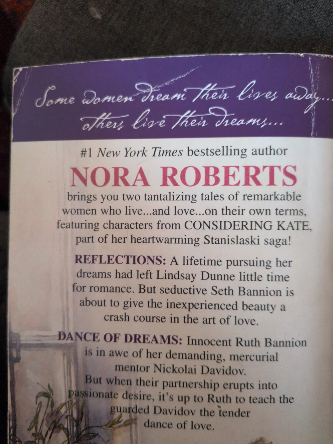 Selling a copy of "Reflections and Dreams" by Nora Roberts! It's part of her heartwarming Stanislaski saga. The book features characters from "Considering Kate". Originally priced at $8.99 CAN.
