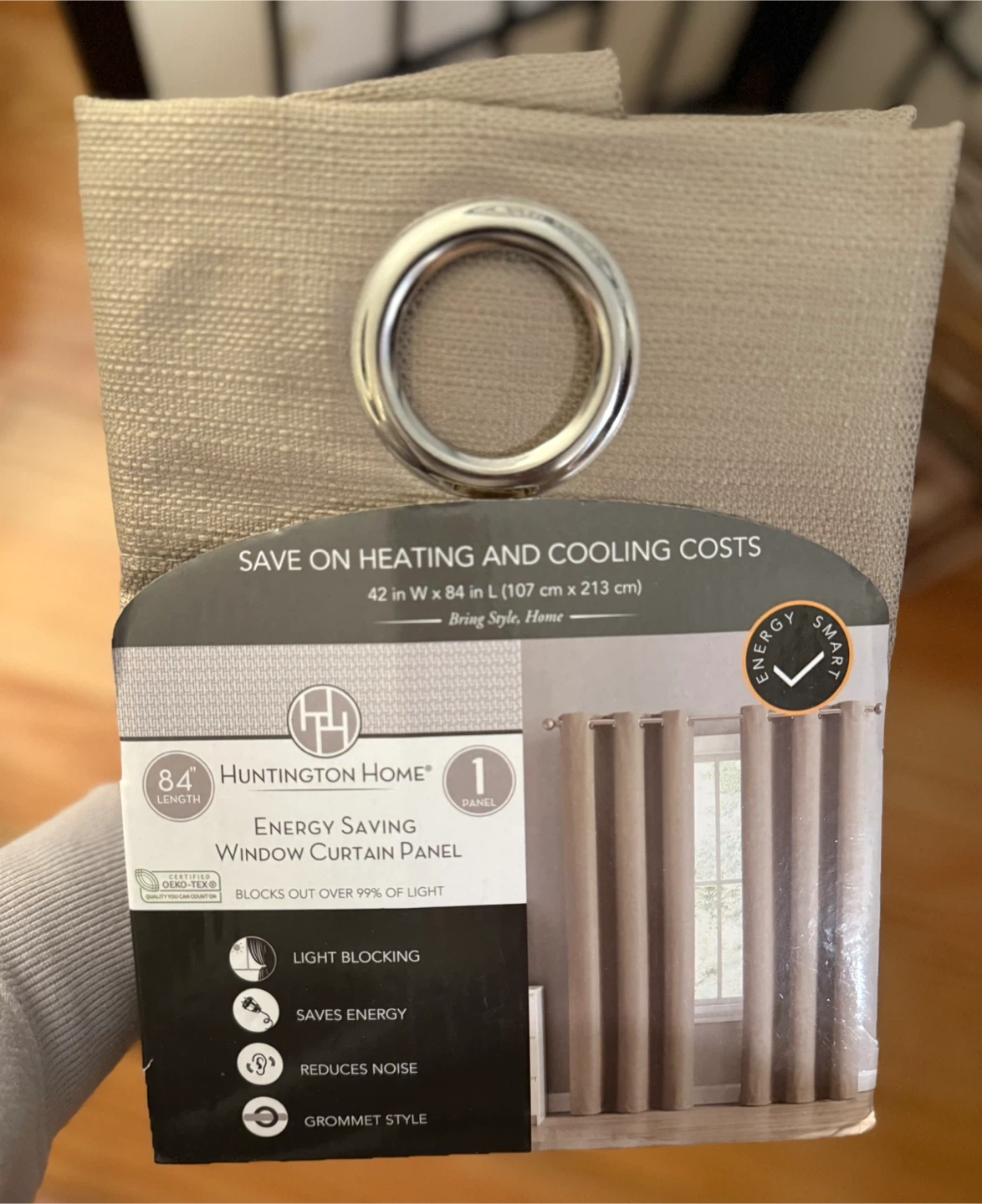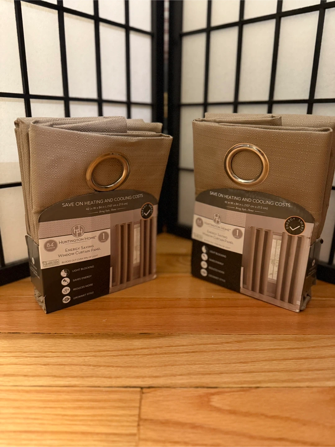 Upgrade your space with these Huntington Home energy-saving window curtains. This set includes 2 panels in a neutral light tan color that easily matches any room style, bedroom, living room, or office.