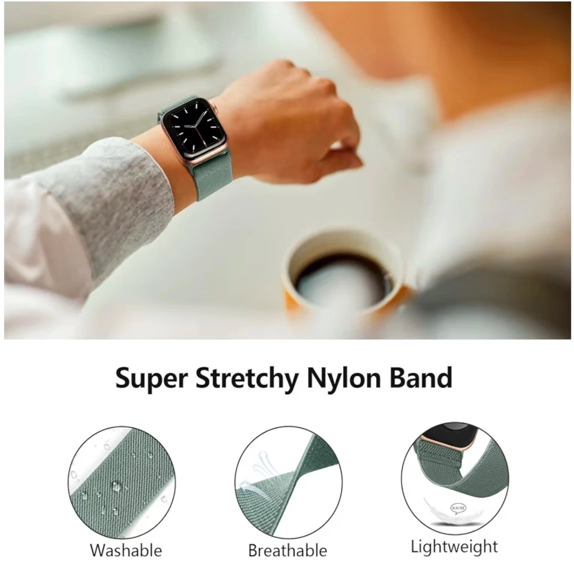 *Get a super stretchy nylon band for your Apple Watch! It's lightweight, breathable, and washable. It is also sweat and splash proof!