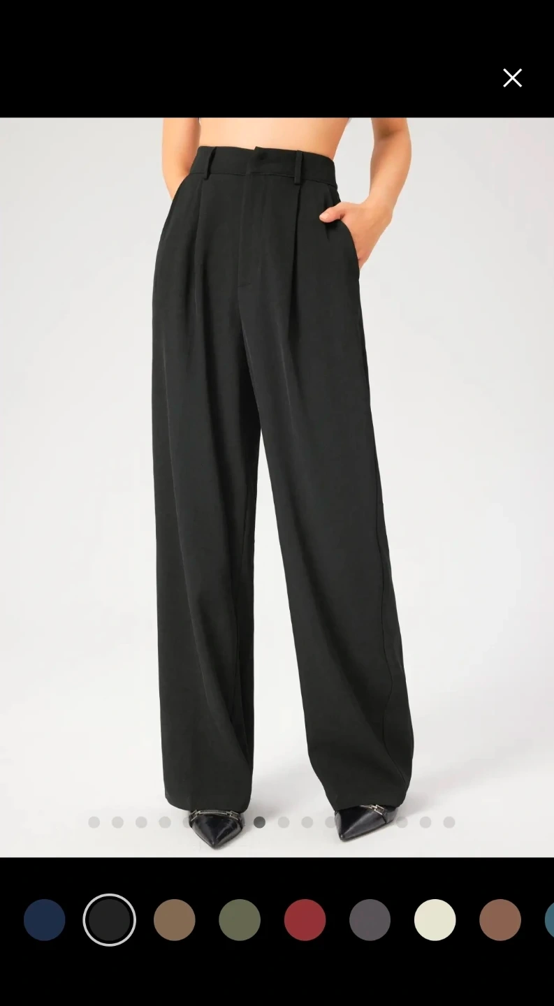 A pair of black, wide-leg pleated pants. Nice thick but soft, wrinkle resistant material.