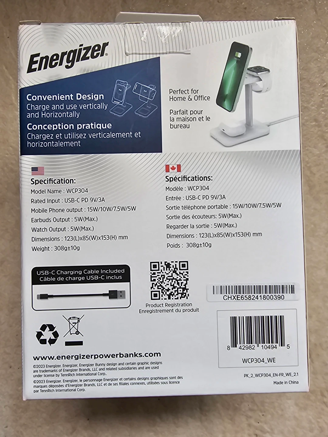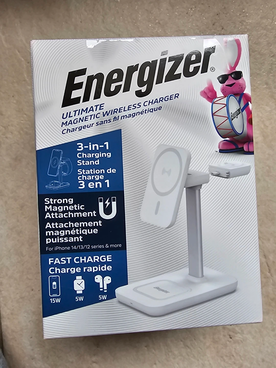 Selling a brand new Energizer 3-in-1 magnetic wireless charger! This charger is perfect for home or the office. It has a convenient design, allowing you to charge and use it vertically or horizontally.