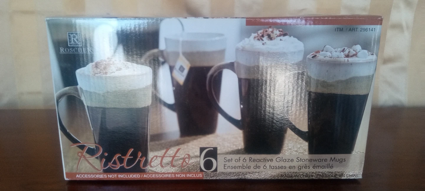 Selling a set of 6 Roscher Ristretto reactive glaze stoneware mugs! They are microwave and dishwasher safe. Perfect for enjoying your favourite hot beverages. The mugs are in excellent condition and ready for a new home!