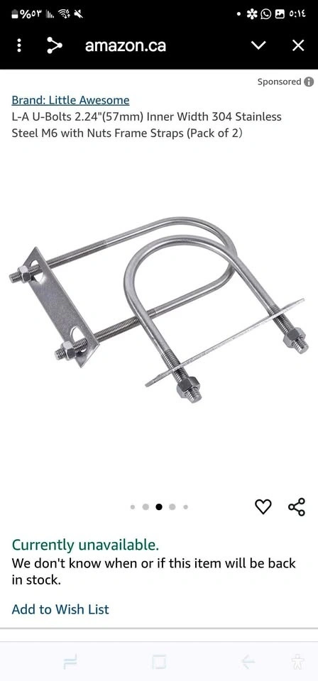Set of 2 2.24" (57mm) inner width 77mm length M6 304 stainless steel round U bolts with nuts, frame plate, washers, boat accessories, sailboat trailers. Feel free to message if you have any questions!