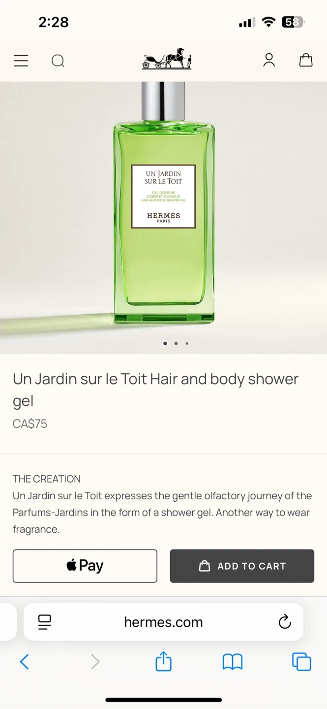 Selling a brand-new bottle of Hermes Un Jardin Sur Le Toit hair and body shower gel, sealed in original plastic.