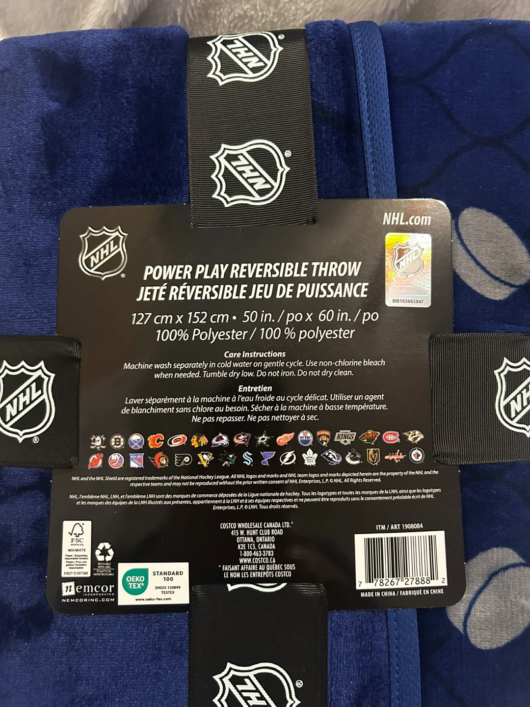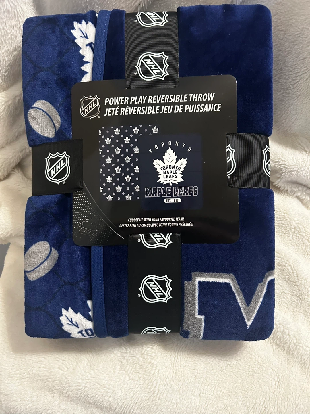 Selling a brand new Toronto Maple Leafs NHL Power Play Reversible Throw! It's still in its original packaging and ready to keep you cozy while cheering on the Leafs.