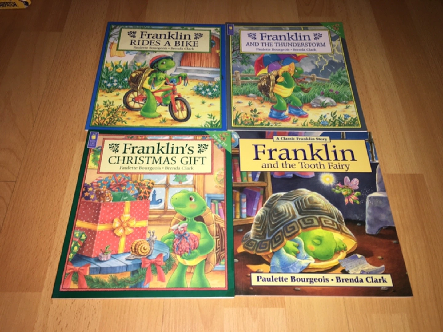 Titles include Franklin Rides a Bike, Franklin and the Thunderstorm, Franklin's Christmas Gift, and Franklin and the Tooth Fairy, plus many more.