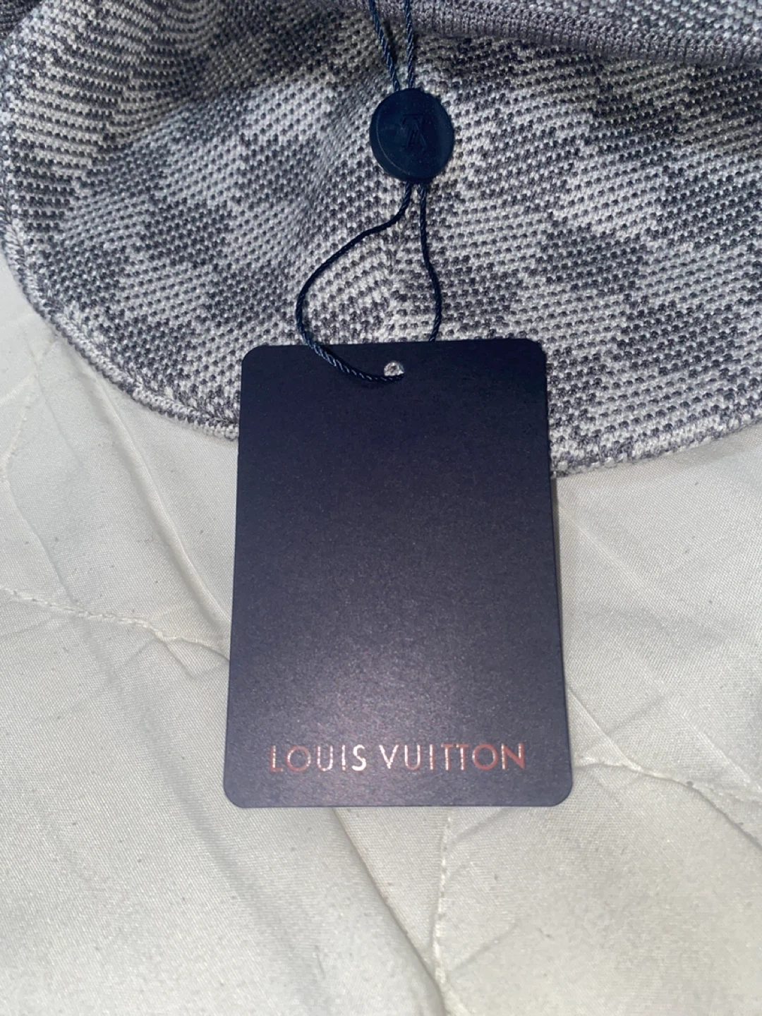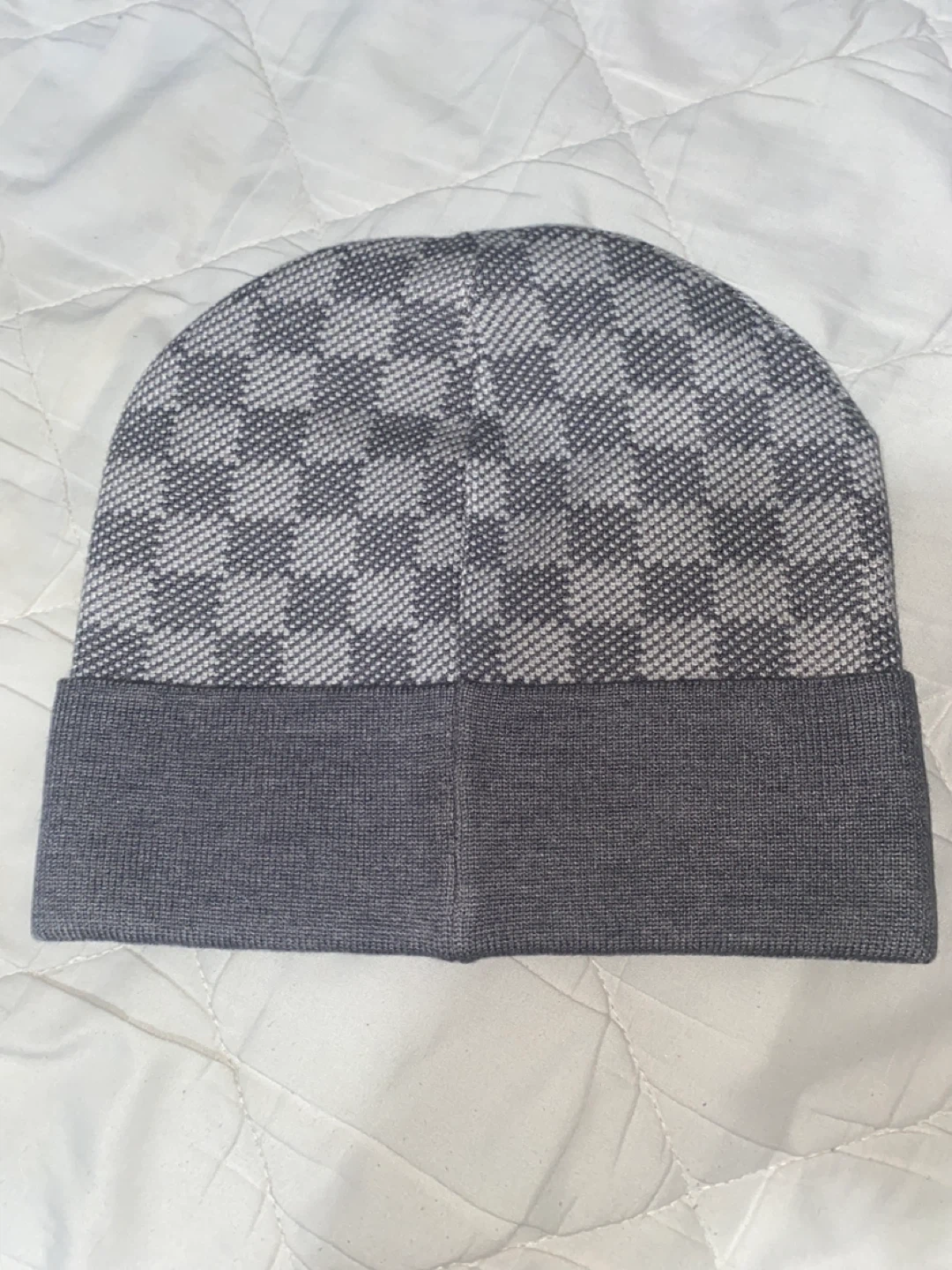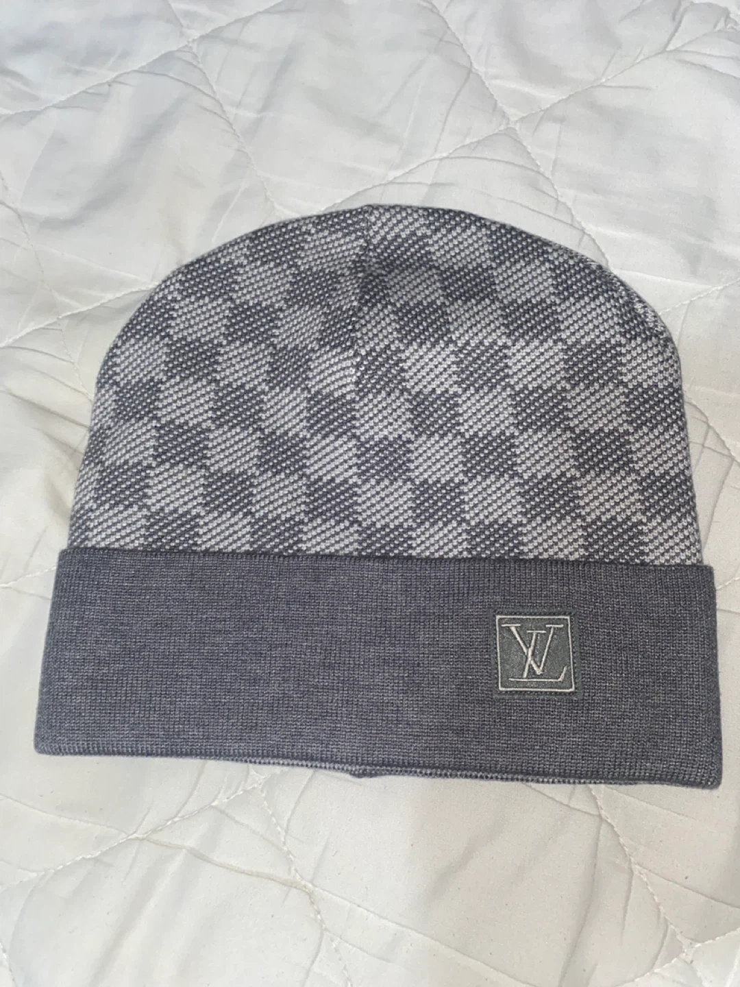 Selling a Louis Vuitton beanie in grey. It's in great condition and comes with the original packaging! Never worn, mint condition. R (e) p.