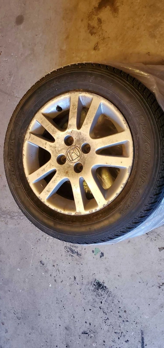 Selling four used OEM Honda 15 inch rims/wheels with 4x100 bolt pattern, perfect as a spare or replacement set. They can use a cleaning, showing signs of use, but are ready to roll! If the ad's up, they are up for grabs! I'm asking $150, a fair price based on similar listings.