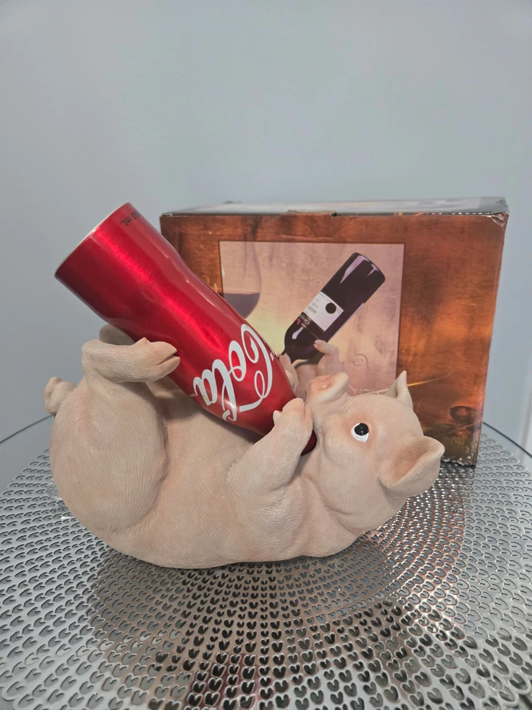 Cute pig figurine bottle holding ! Perfect for adding a touch of whimsy to your home decor.