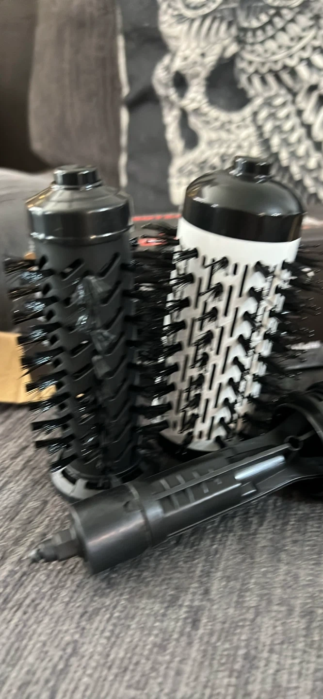 This 2-in-1 hot air styling tool is perfect for travel or home use! It comes with one large and one small brush head.