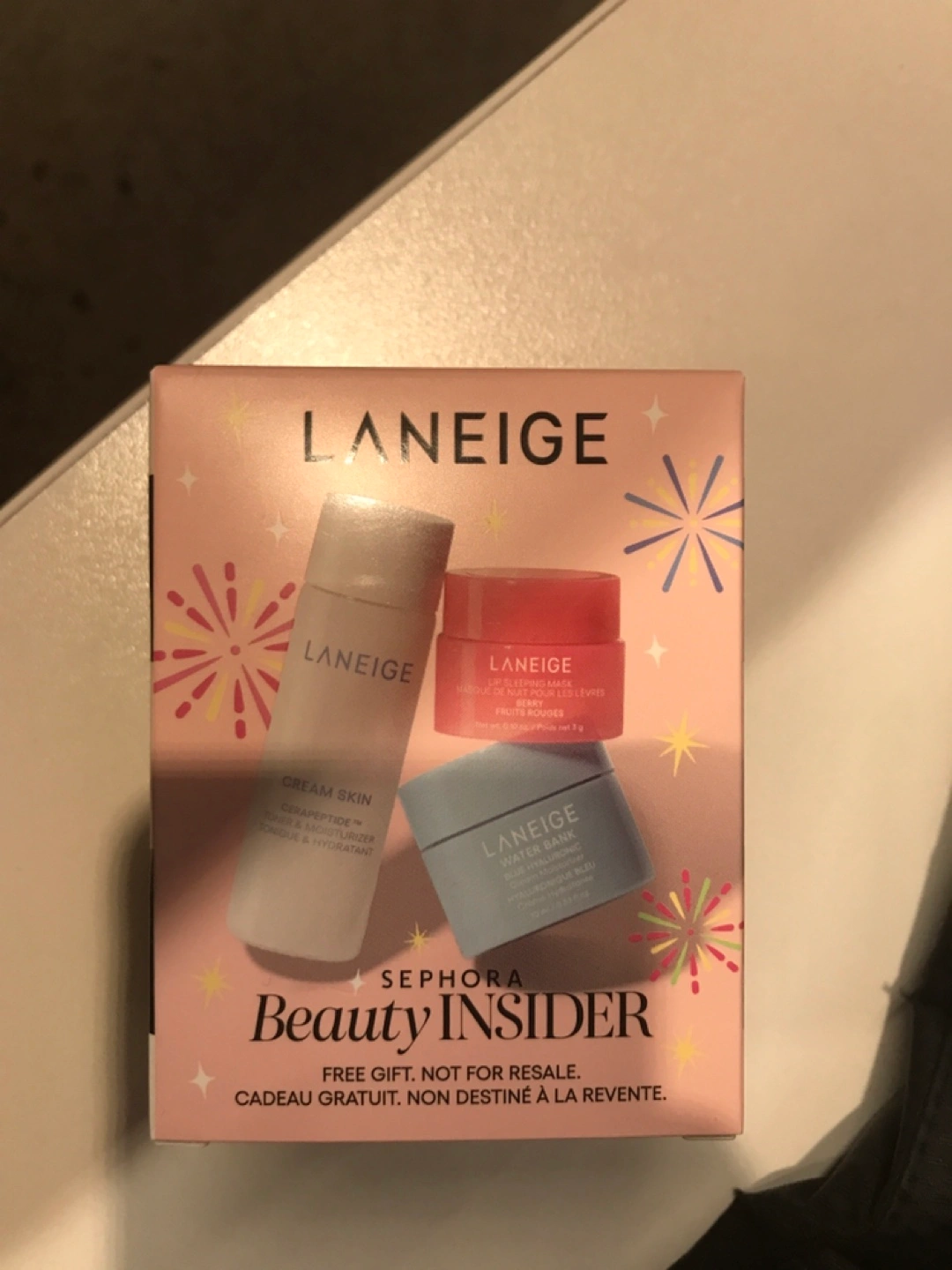 Miniature skincare set. Includes Water Bank Blue Hyaluronic Cream, Lip Sleeping Mask in Berry, and Cream Skin Ceramide Toner & Moisturizer.