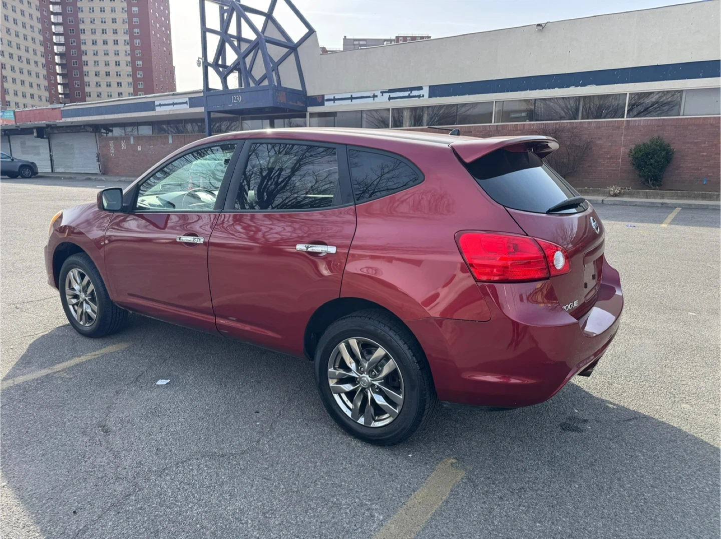 This is a red Nissan Rogue 2010 AWD SUV. It has 89,458 miles on it. This vehicle has a sleek design and comes with alloy wheels. It's a reliable SUV for everyday use!
