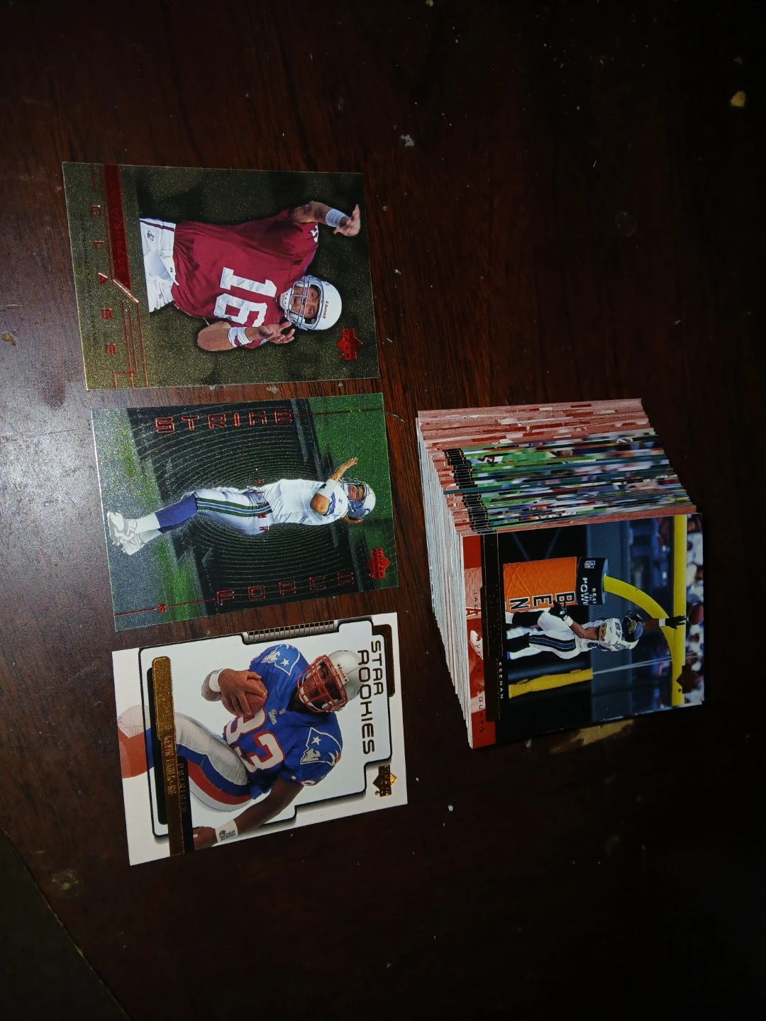 This lot includes several football trading cards featuring NFL players. Some cards appear to be from the "Star Rookies" and "Upper Deck" series. They're great for any football card collector!