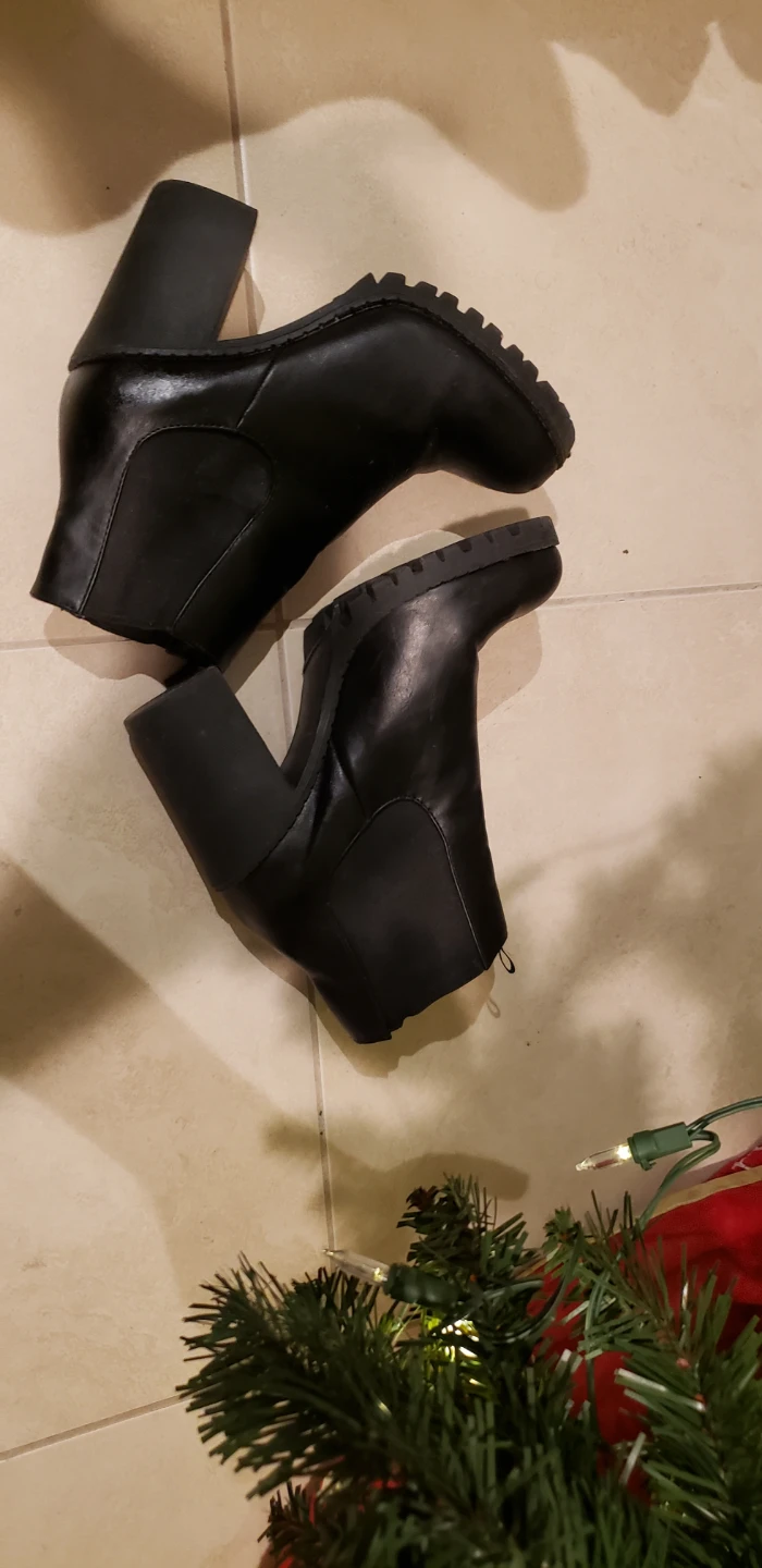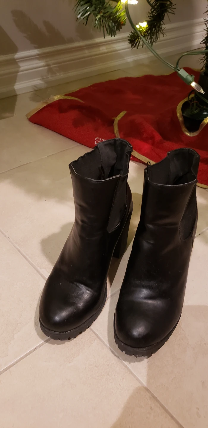 Selling a pair of black ankle boots in size 8. They have a stylish, chunky heel and are in good condition. Perfect for adding a bit of edge to any outfit!
