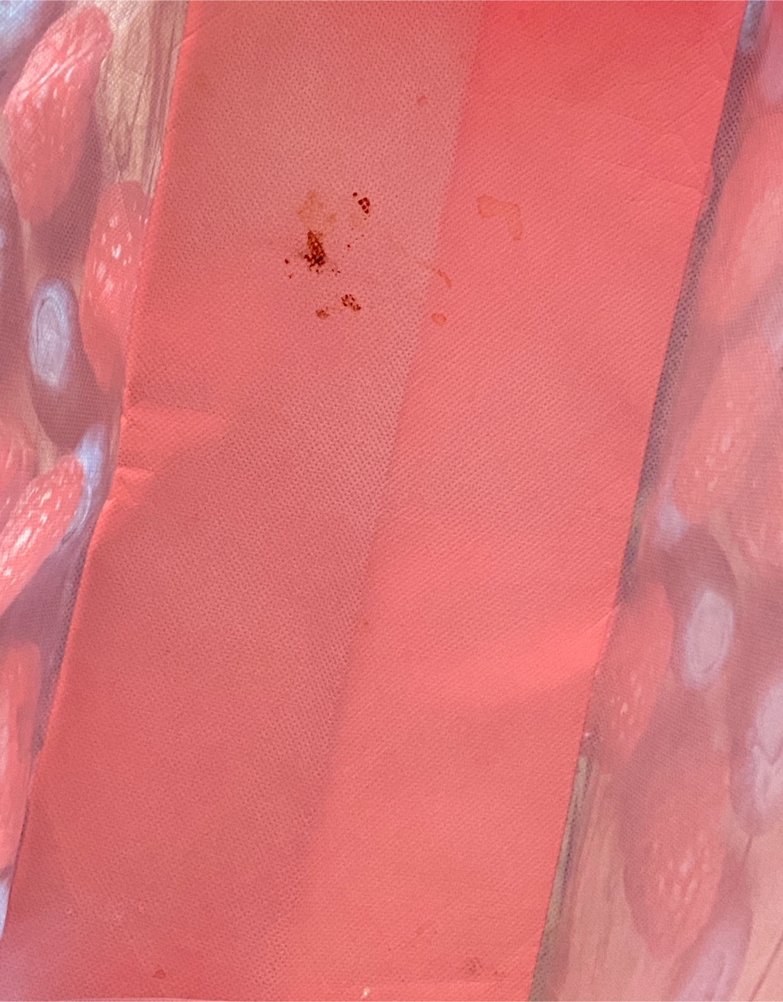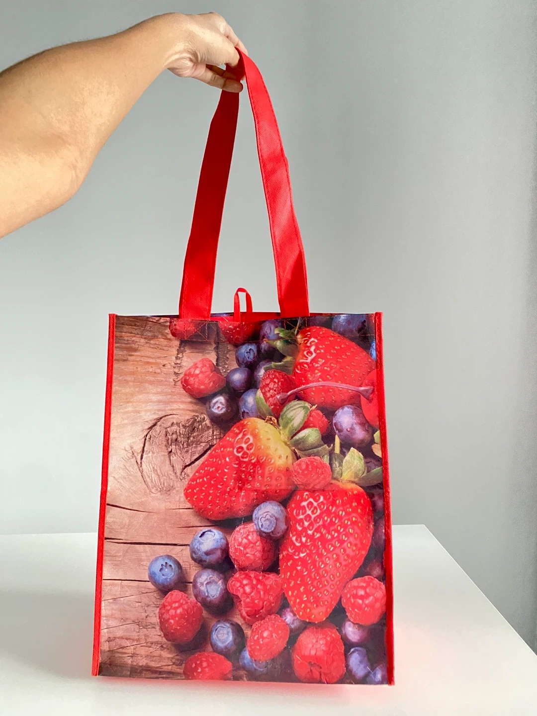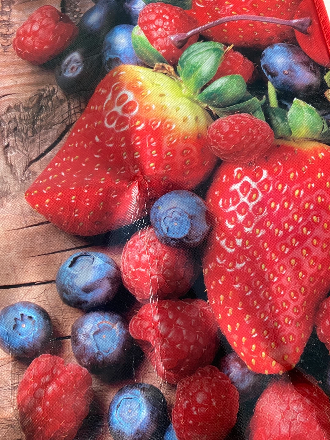 Here is a berry cute reusable bag, tiny stain on the inside of the bag otherwise in good condition.