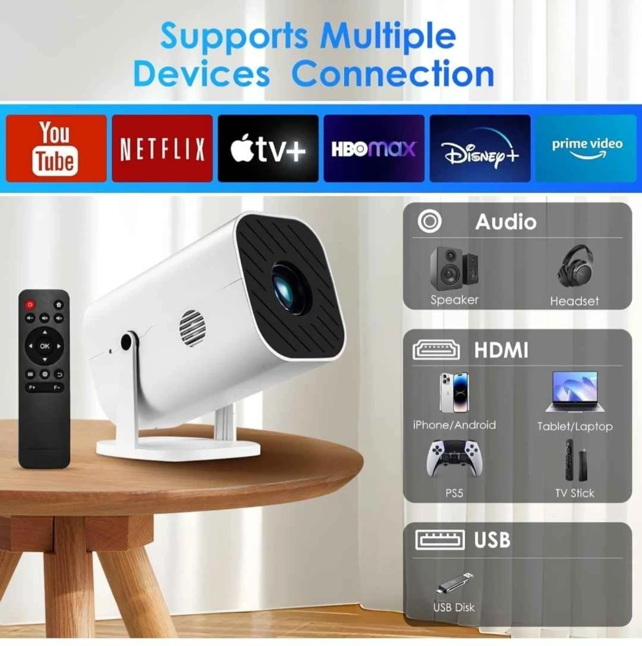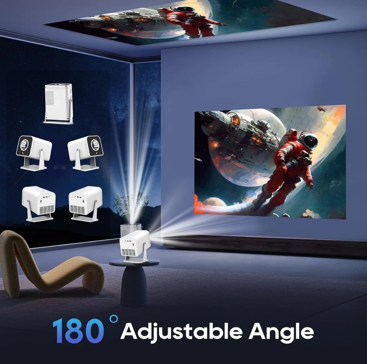 1080P Mini Projector - WiFi 6 / Bluetooth, 180°, USB, HDMI