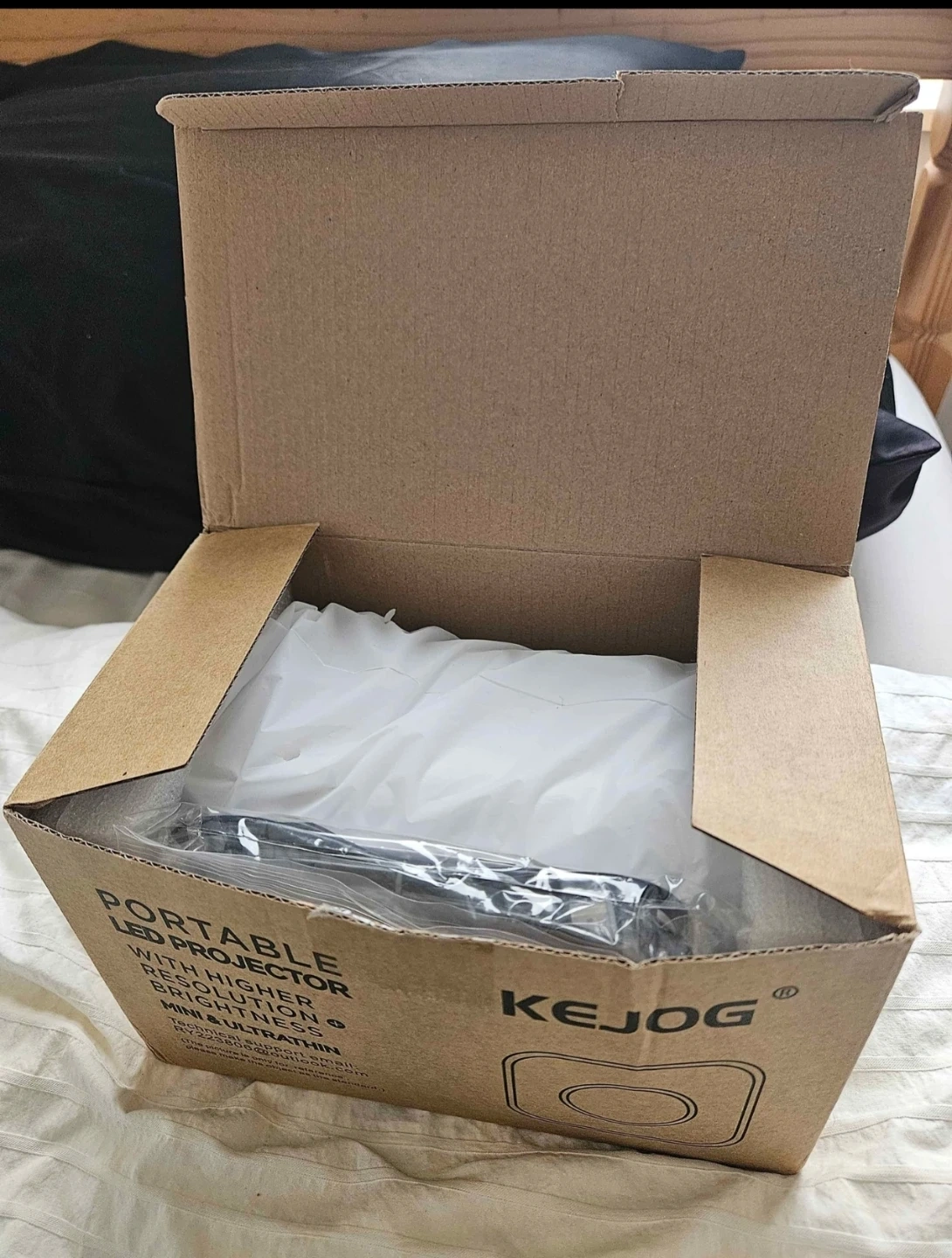 Selling a Brand New KEJOG projector that supports native 1080P with 4K support for a clear picture and cinema experience. It has 1080P 8500 Lumens, features a 180° adjustable angle, and supports multiple device connections like YouTube, Netflix, Apple TV+, HBO Max, Disney+, and Prime Video.