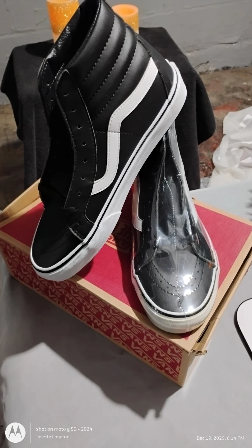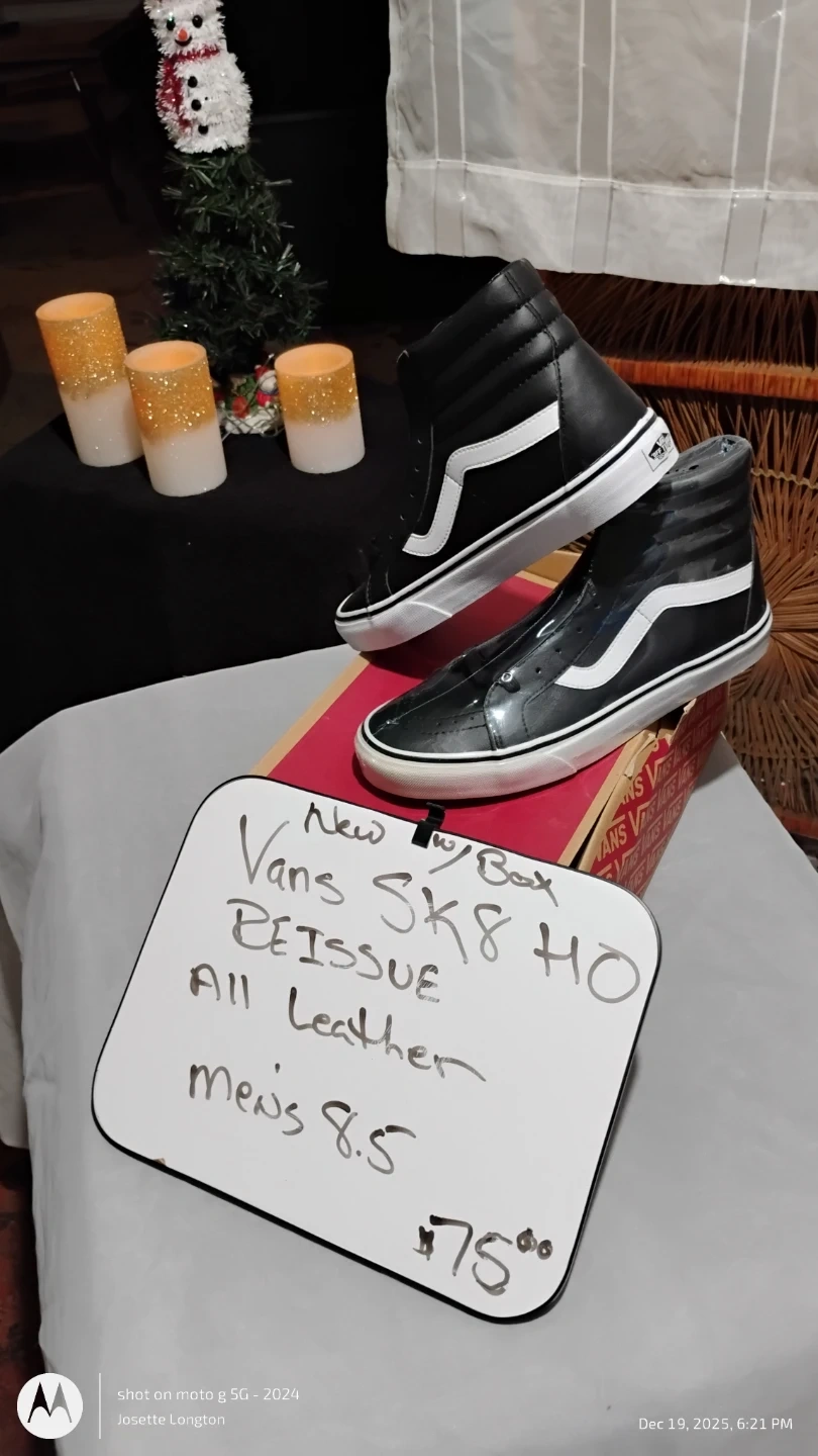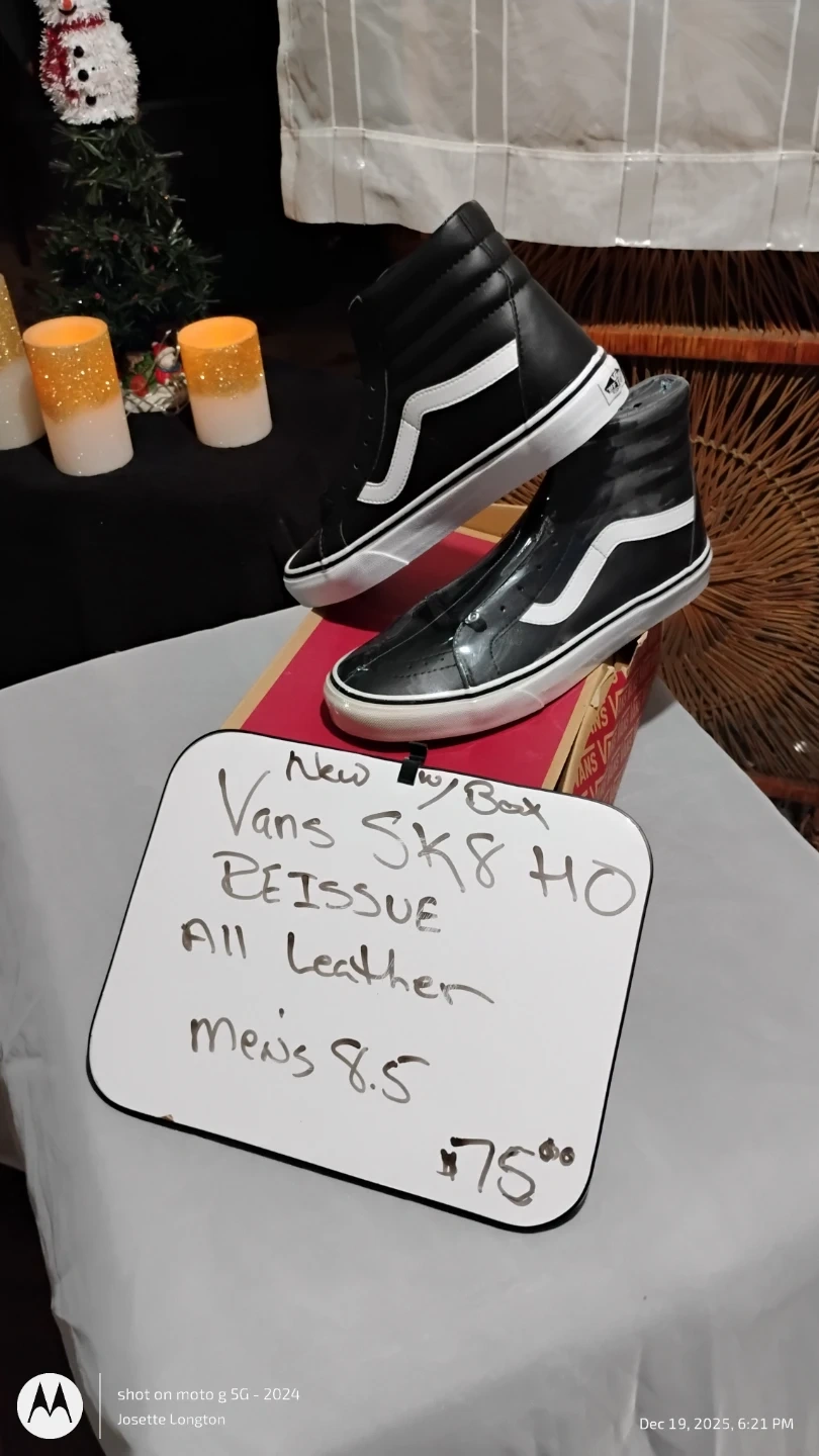 These are a new pair of Vans SK8-Hi Reissue sneakers in all leather! They are men's size 8.5 and come with the box.