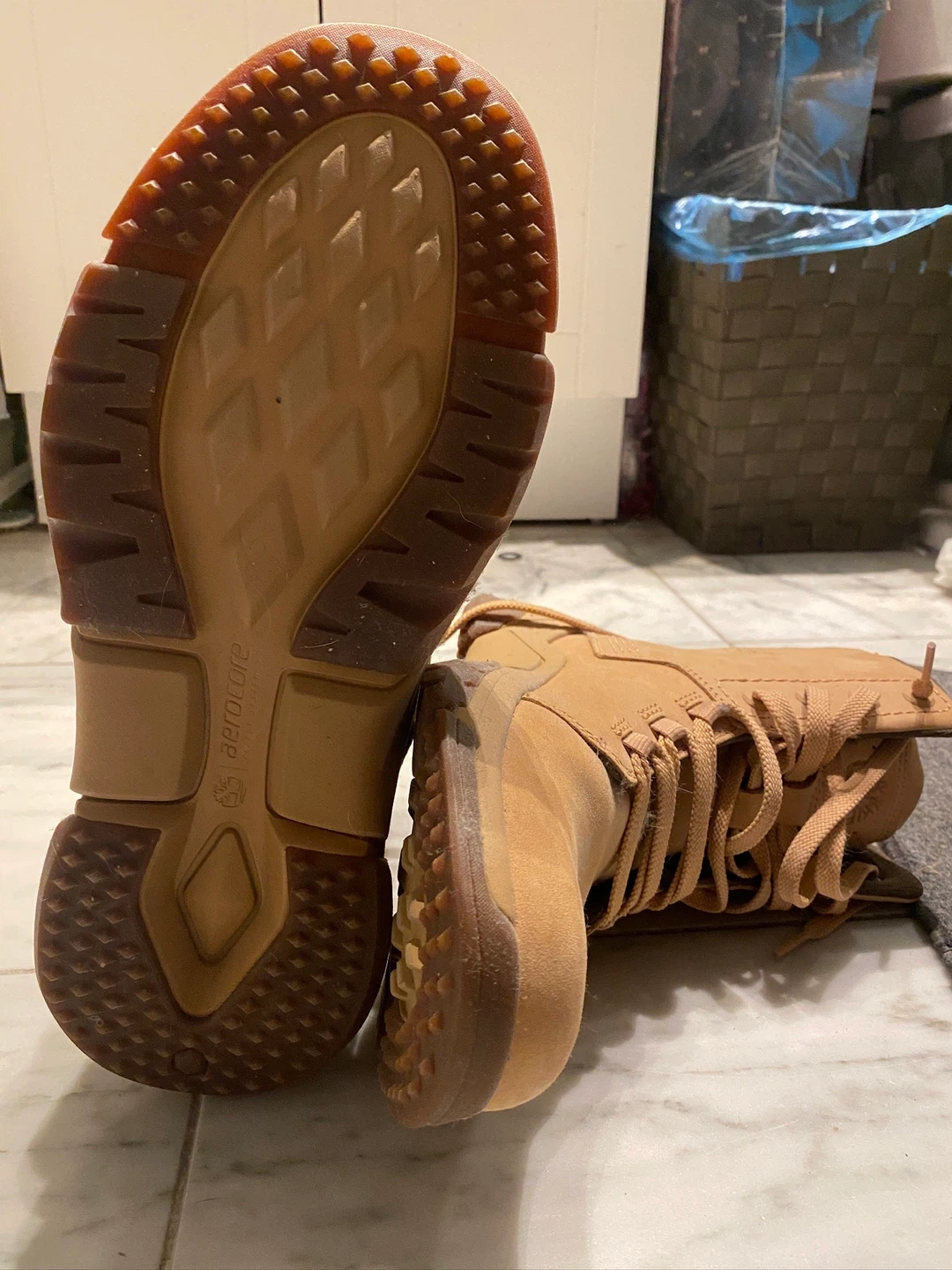 Timberland Aerocore CityForce boots are lightweight, athletic-inspired city boots combining classic Timberland style with modern comfort tech, featuring the Aerocore™ energy system (lightweight foam for cushioning), often leather/nubuck uppers, rubber soles, and designed for urban exploration, offering a blend of durability and sneaker-like comfort for walking city streets. They come in various models, including "Reveal" and "Hiker" versions, known for being supportive, cushioned, and surprisingly light. (No Box)
