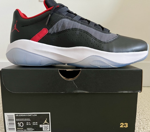 Jordan 11 CMFT Low - Black/University Red-White $110