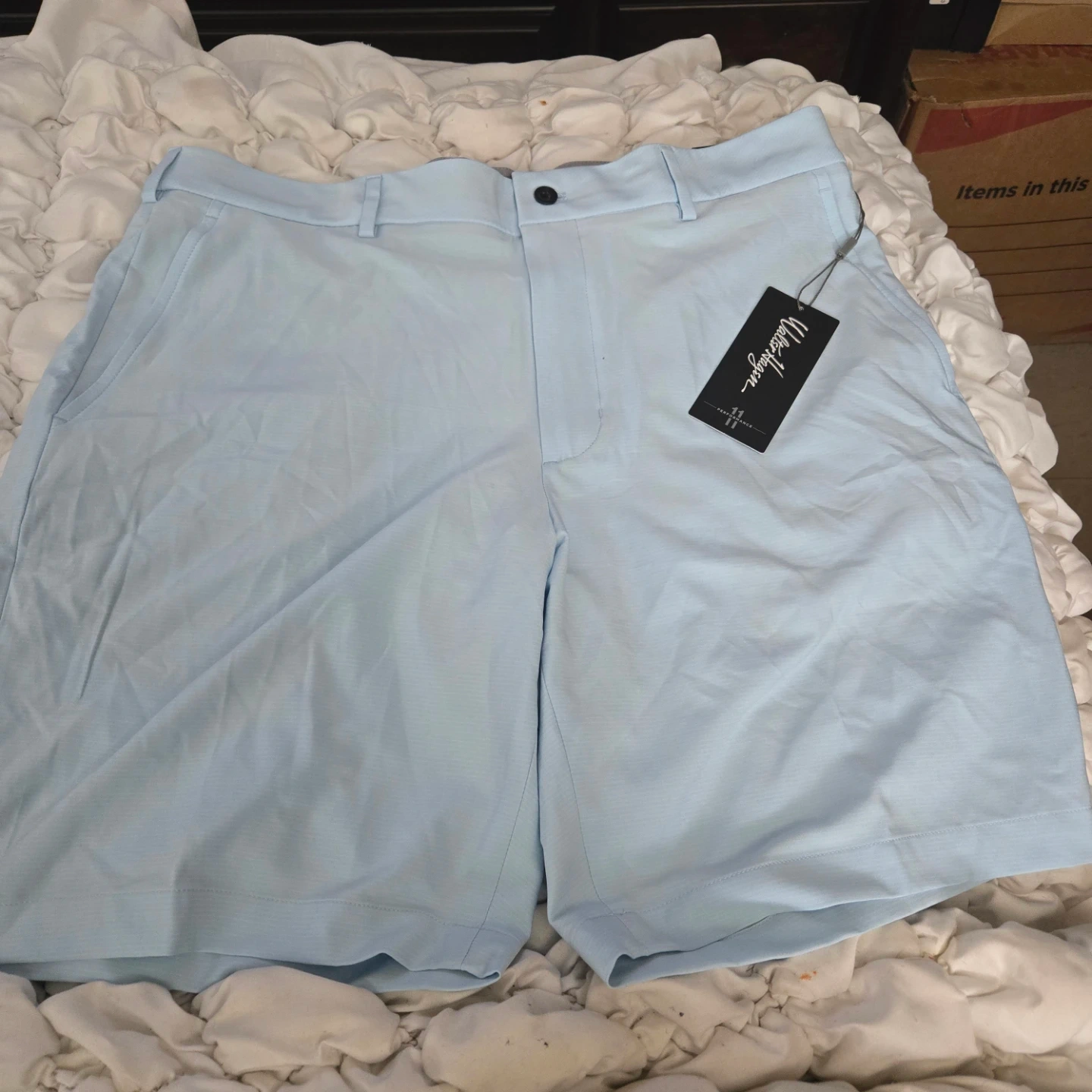 These Walter Hagen Performance 11 golf shorts are brand new with the tag still attached! They are a light blue color and size W36 with a 9" inseam. These shorts are flat front and wrinkle resistant, perfect for a day on the green!