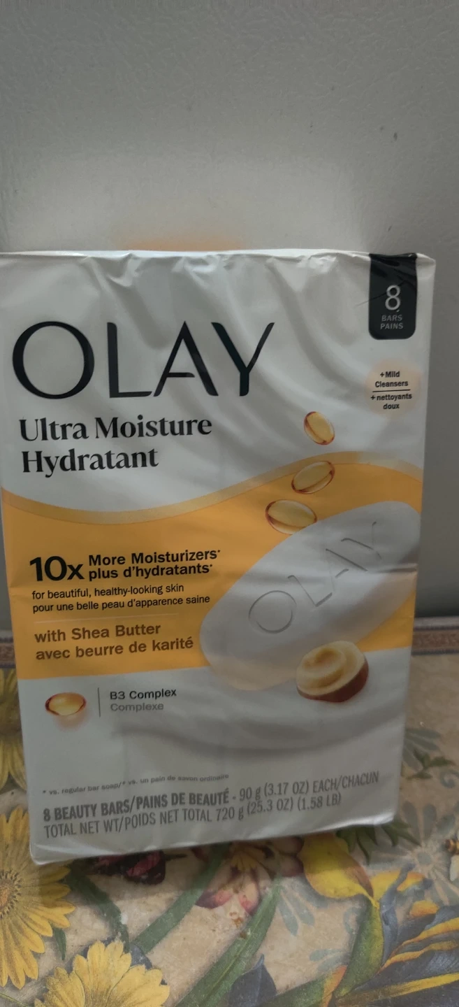 Selling a pack of OLAY Ultra Moisture Hydratant beauty bars. This pack contains 8 bars with shea butter and B3 complex. Each bar is 90 g (3.17 oz).