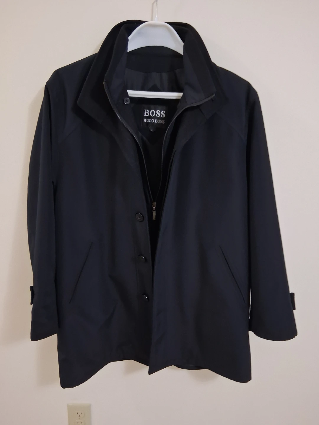 I'm selling a Hugo Boss coat in black. It's in great condition and perfect for fall weather!