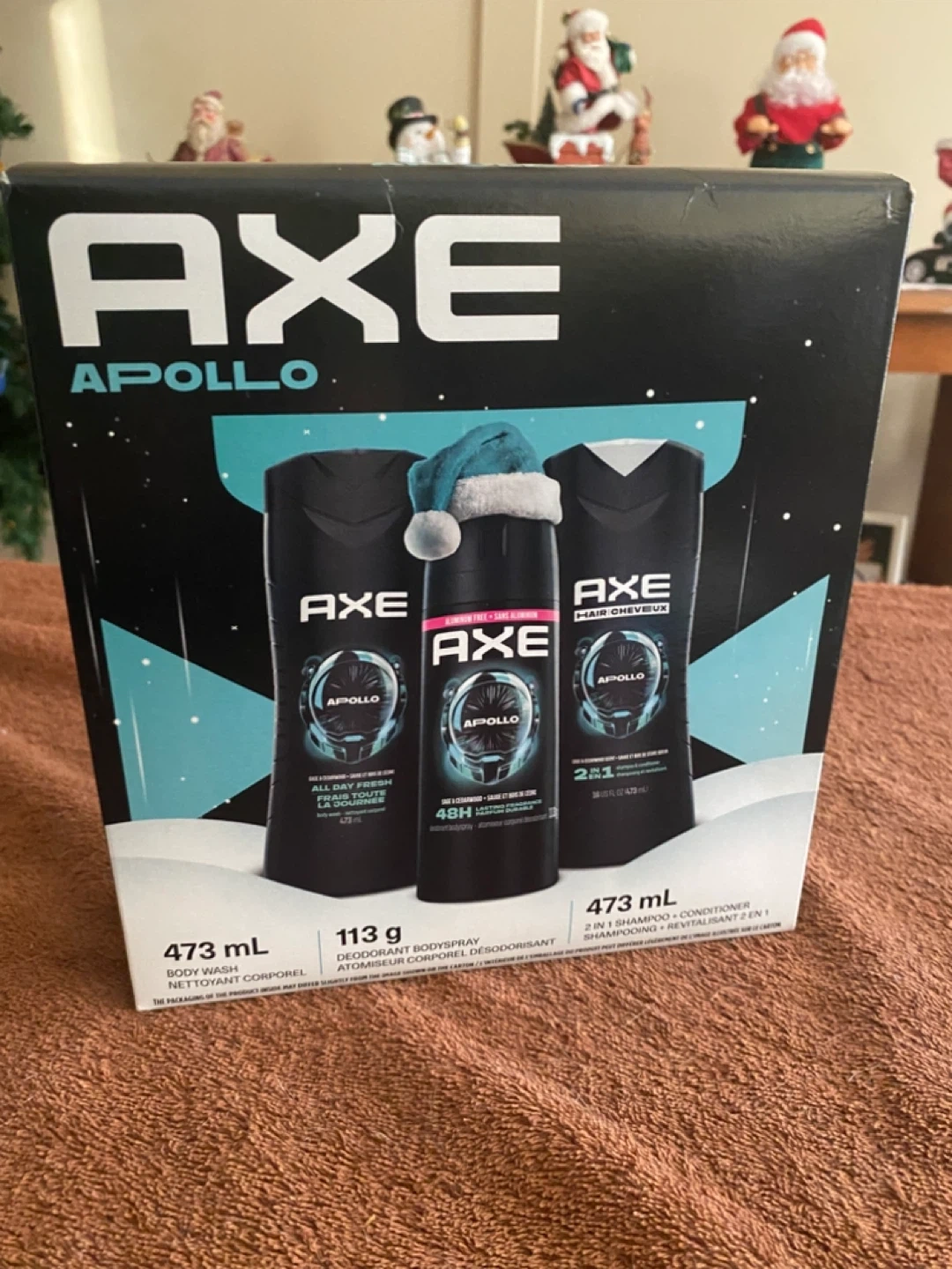 Selling NEW IN BOX, can split for multiple stockings…. It is a Axe Apollo Holiday Gift Set! Retail $29.99.
